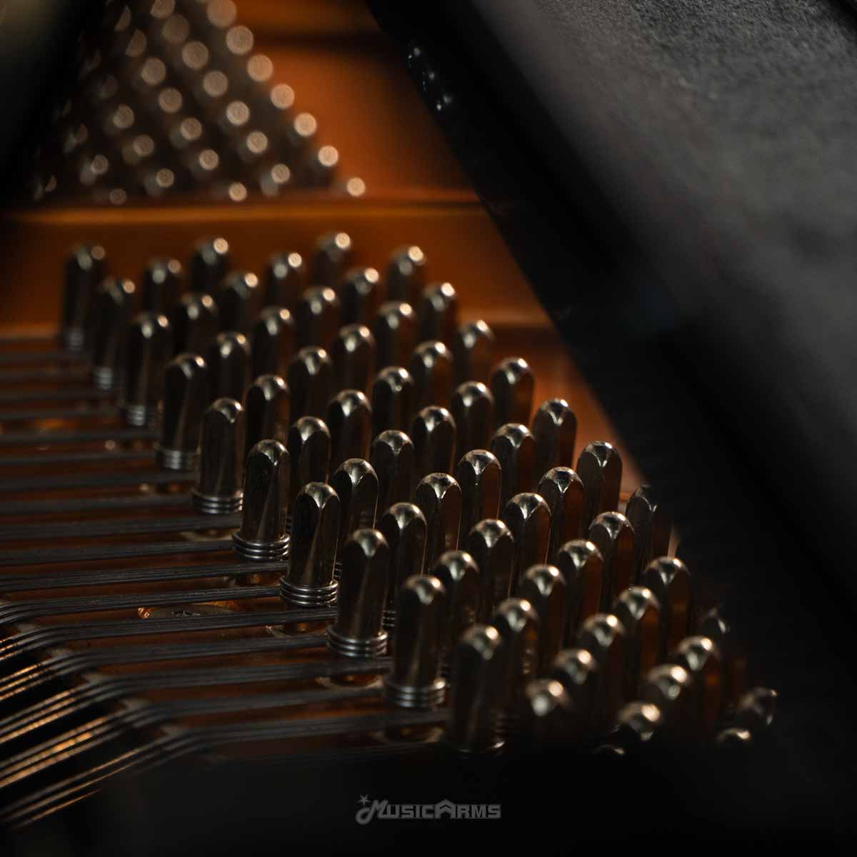 การมาบรรจบกันของ ขอบ เพลท และคานด้านล่าง ที่จุดศูนย์กลางจุดเดียวใจกลางของเปียโน สร้างความแข็งแกร่งของ “แกนกลาง” ที่แข็งแกร่งอย่างเหลือเชื่อ ซึ่งเพิ่มความสามารถในการสะท้อนพลังเสียงที่โดดเด่นและยั่งยืน