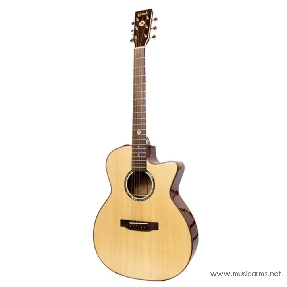 Kazuki All Soul 2 GA Rosewood กีต้าร์ซีรี่ย์ All Soul ที่ทาง Kazuki ตั้งใจทำโดยมีจุดเด่นคือไม้แท้ทั้งตัว รุ่นนี้จะเป็นทรง GA ที่มีขนาดไม่ใหญ่มาก เล่นง่ายแม้ว่าจะเป็นผู้หญิงหรือคนตัวเล็ก ไม้หน้าจะเป็นท็อปโซลิดซิทก้าสปรู๊ซ ให้โทนเสียงใส ยิ่งนานไปเสียงจะหวานนุ่มนวลมากขึ้นอีกด้วย ส่วนด้านข้างและด้านหลังไม้โซลิดโรสวู้ดซึ่งเริ่มหายาก ให้โทนเสียงหนาอบอุ่น ผสมกันลงตัวมีมิติ เรื่องงานอะไหล่หายห่วงกับรุ่นท็อปอย่าง All Soul เพราะจัดเต็มทั้ง Nut และ Saddle ทำจากกระดูก และให้สาย D’addario EXP11 มาด้วย ลูกบิด Open Gear ชุบสีทองสวยงาม ดูหรูหรา เรียกได้ว่าครบเครื่องทั้งเรื่องเสียงและรูปลักษณ์ภายนอก เทียบกับราคาแล้วขอบอกว่าใครชอบกีต้าร์ไม้แท้ทั้งตัวต้องจัดให้ไวแล้ว