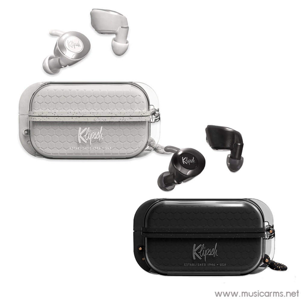 Klipsch T5 II Truewireless หูฟังอินเอียร์แบบไวเรส ทนทาน กันฝุ่นและกันน้ำ (ระดับ IP67) มีระบบกำจัดความชื้นภายในเคสช่วยให้หูฟังของคุณแห้งอยู่เสมอ สามารถฟังเสียงรอบตัวคุณด้วยการกดปุ่มเพื่อให้เสียงจากภายนอกผ่านเข้ามา จุกหูฟังรูปวงรีขนาดที่พอดีเพื่อการสวมใส่ที่สบาย ด้วยแบตเตอรี่ 8 ชั่วโมงและเคสชาร์จไร้สาย จะช่วยให้ใช้งานได้ต่เนื่องทั้งวัน เชื่อมต่อไร้สายด้วย Bluetooth เวอร์ชั่น 5 ที่มีความเสถียรสูง สัญญาณรบกวนต่ำ รับประสิทธิภาพเสียงได้เต็มรูปแบบทุกแนวเพลงโดยไม่มีสะดุด