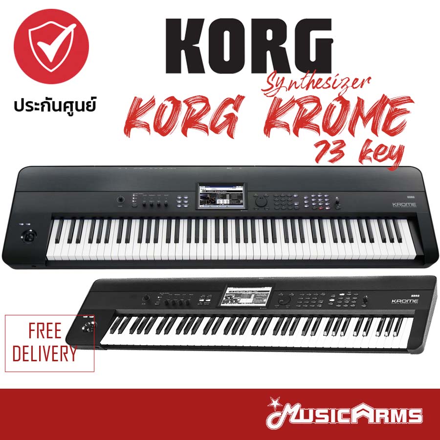 Korg krome 73 Keys คีย์บอร์ดจากทางค่าย Korg ขนาดมาตรฐาน มาพร้อมกับฟังค์ชั่นสุดล้ำเต็มรูปแบบ ไล่กันตั้งแต่ระบบแป้นที่เป็ยแบบใหม่ไวต่อการสัมผัส สามารถทำเสียงโพลีโฟนีได้ทั้งแบบเล่นคนเดียวหรือเล่นคู่ทั้ง 120 และ 60 เสียง ออกแบบเสียงเปียโนได้สเมือนจริงมีการเสียบแป้นเหยียบเพิ่มเติมได้ จอแสดงผลขนาด 7 นิ้วใหญ่สบายตาแบบทัชสกรีนที่ช่วยให้คุณปรับฟังค์ชั่นได้อย่างง่ายๆ เมมโมรี่ในตัวจัดเต็มขนาด 3.8 Gb ที่จุเพลงได้ถคง 128 เพลงและยังปรับเทมโประดับความเร็วได้ตามใจชอบ ไม่ว่าจะนำไปเล่นสดหรือบันทึกเสียง ตัวนี้ถือว่าเหมาะสมมากๆครับ