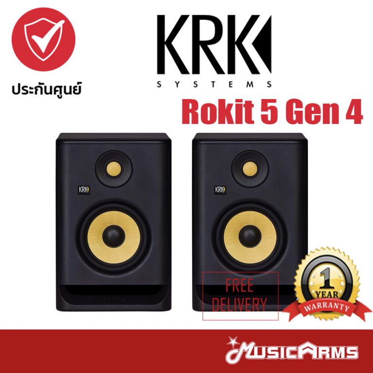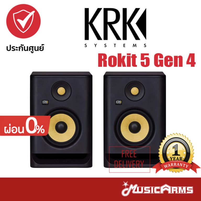 KRK Rokit 5 Gen 4 ลำโพงสตูดิโอมอนิเตอร์ซึ่งออกมาเป็นรุ่นที่ 4 แล้ว โดยรุ่นนี้มีการปรับระบบเสียงให้ดียิ่งขึ้นกว่าเดิม ตัวลำโพงเปลี่ยนมาใช้แบบ Near-Field ขนาด 5 นิ้ว ได้ซาวด์ที่ใส คมชัด รับคลื่ยความถี่ได้กว้างกว่าเดิม กำลังขับมากถึง 55 วัตต์ นอกจานี้แล้วยังเพิ่มการใช้งาน DSP-driven เพื่อปรับ EQ โดยจะปรับผ่านหน้าจอ LCD ด้านหลังตู้ ตัวตู้ดีไซด์มาอย่างสวยงามแบบปิดป้องกันฝุ่นละออง ช่องต่อมีทั้งแบบ TRS และ XLR เชื่อมต่อเข้ากับอุปกรณ์ได้ง่าย ของดีแบบนี้ต้องแนะนำเลย