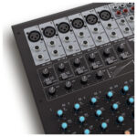 Four microphone channels can be processed separately using the built-in compressor for an effective control of dynamics; two more can alternatively be used as a stereo line channels. The other stereo channels are equipped with 2-band EQs.