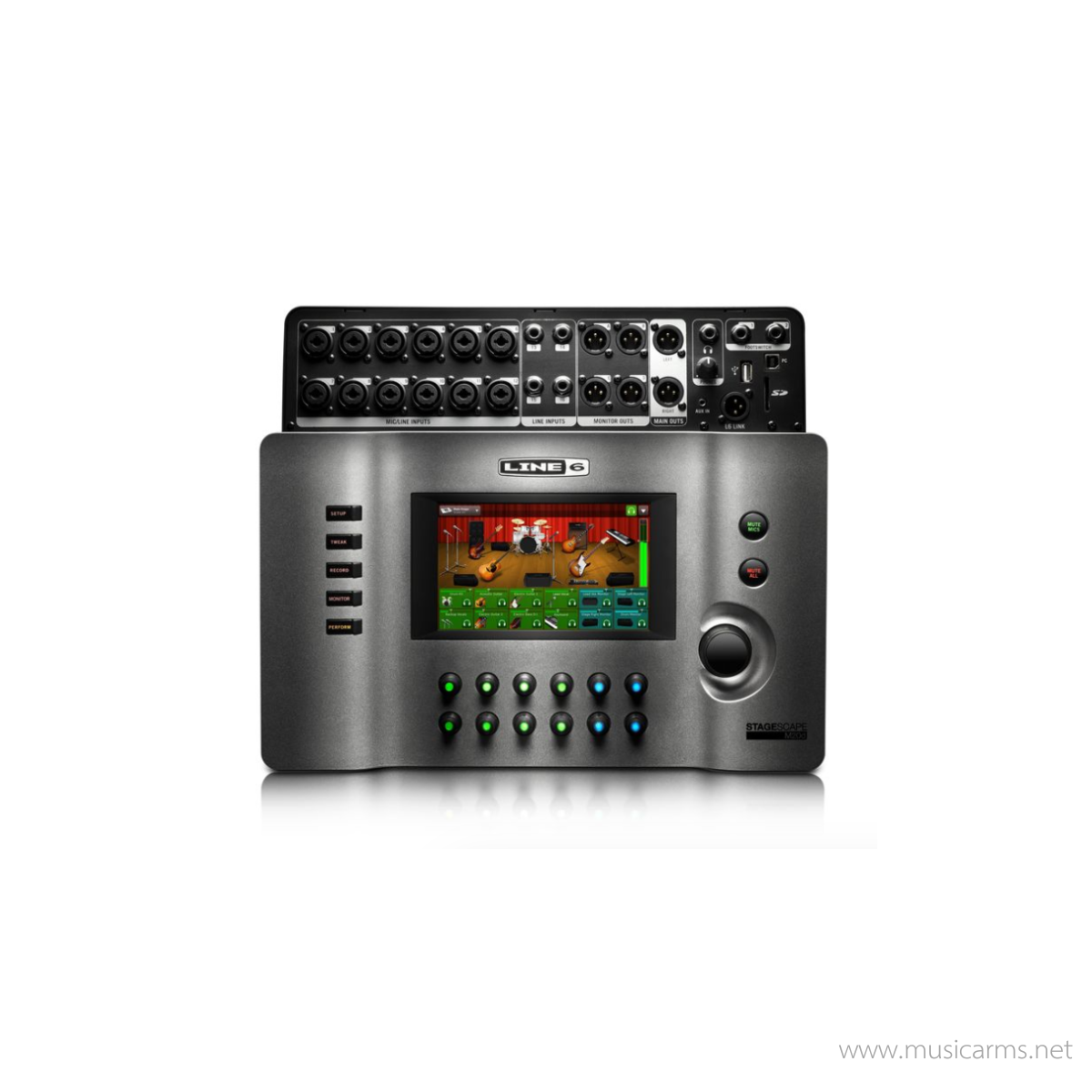 The Line 6 StageScape M20d digital mixing system gives you a powerful and intuitive new way to mix and record your live shows. StageScape M20d was built from the ground up to take the guesswork out of live mixing, letting you focus on the performance and not on your gear. Imagine plugging in all of your sound sources, while the StageScape M20d automatically recognizes which are microphones and which are instruments and optimizes your channel strip and effects settings for them. Then picture managing your signals from an intuitive touchscreen interface, using visual cues to route signals and set up monitor mixes.