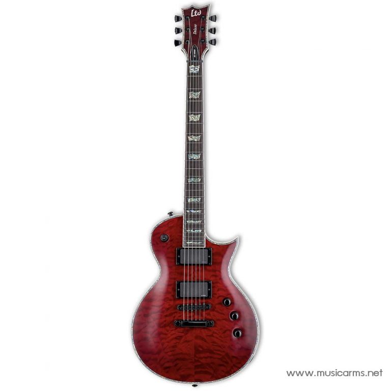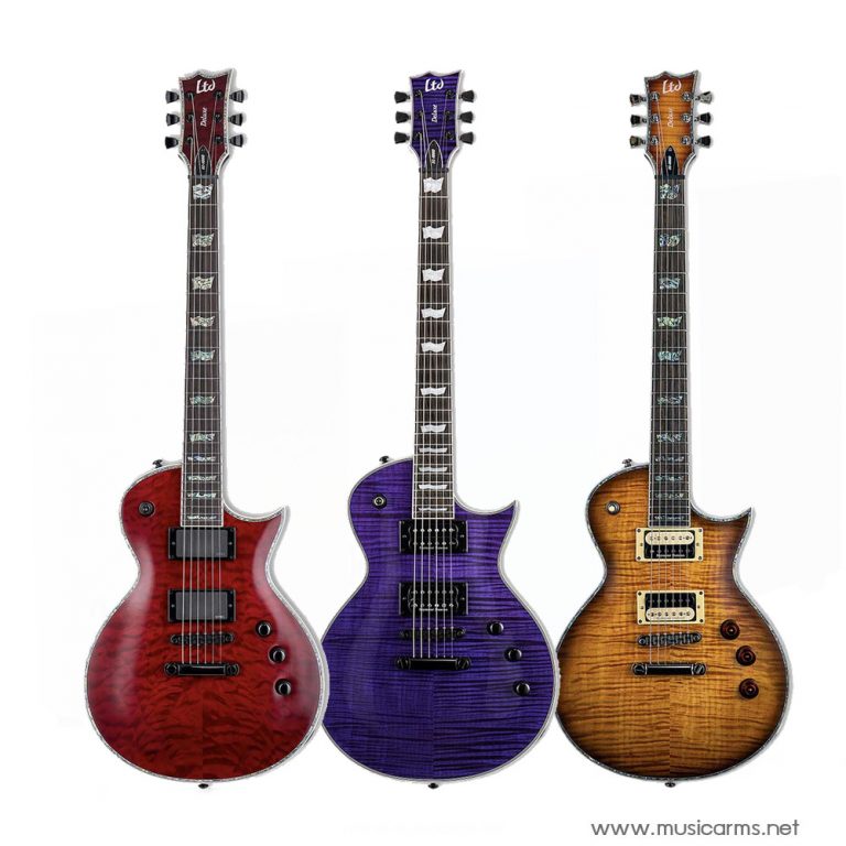 LTD EC-1000 FM กีตาร์ไฟฟ้าใน LTD EC-1000 Series ได้รับการออกแบบมาเพื่อให้โทนเสียง สัมผัส รูปลักษณ์ และคุณภาพที่นักดนตรีมืออาชีพต้องการ บอดี้ไม้มะฮอกกานีเสียงแน่นๆ ปะหน้า้วยไม้เฟลมเมเปิลมีลายไม้สวยงามและเพิ่มมิติเสียง คอเป็นไม้มะฮอกกานี 3 ชิ้น แข็งแรง รุ่นนี้จะมี 24 เฟรต โซโล่กันได้สะใจลึกยิ่งขึ้น ขุมพลังเสียงสุดดุดันกับปิ๊กอัพ Seymour Duncan ’59 และ Seymour Duncan JB ซาวด์เล่นเพลงร็อคหนักๆได้สบายๆ ถ้าใครชอบเรื่องเสียงและความสวยงามของลายไม้ เลือกรุ่นนี้ไม่ผิดหวังแน่นอน