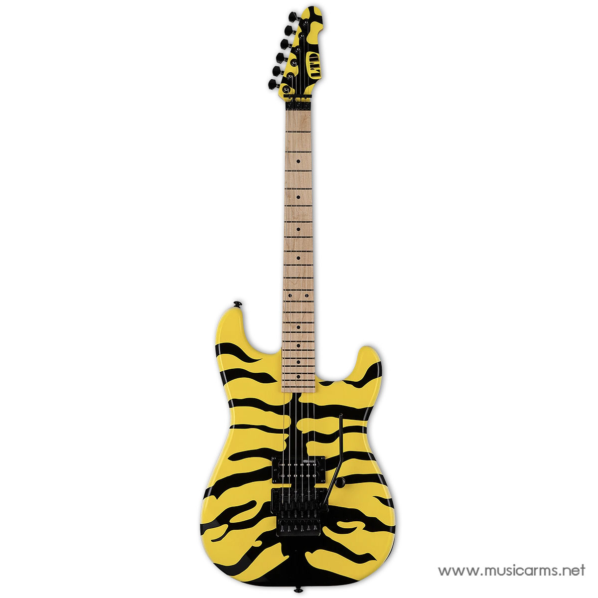 - กราฟิกลายเสือสุดโฉบเฉี่ยว: บอดี้ไม้ Basswood มาในสีเหลืองพร้อมลวดลาย Tiger Stripe ที่ถอดแบบมาจากกีตาร์ตัวเก่งของ George Lynch มอบภาพลักษณ์ที่ทรงพลังและสะดุดตาในทุกการแสดงสด