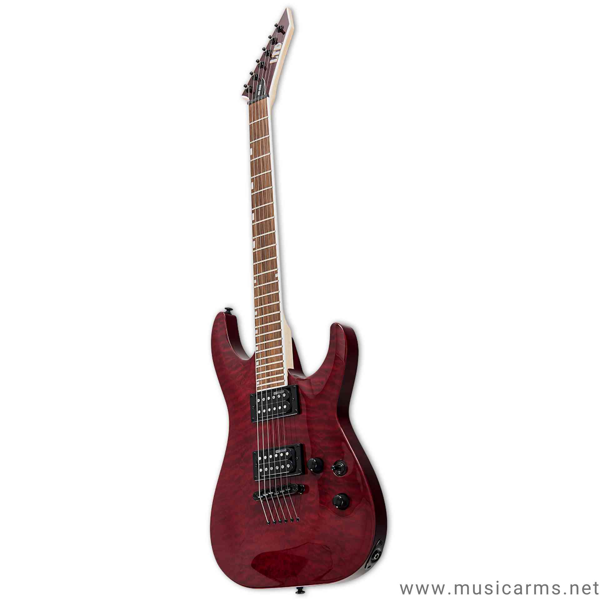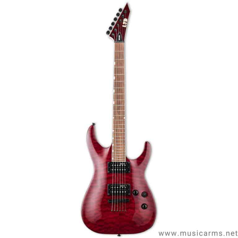 The MH-200QMNT offers the arched top of the ESP Horizon with the aggressive styling elements of the M Series, all wrapped in an affordable high-quality instrument, and adds a quilted maple top in See Thru Black Cherry finish. It features bolt-on construction of a mahogany body with a maple neck and roasted jatoba fingerboard with 24 extra-jumbo frets. Its sound is powered by powerful, punchy ESP Designed pickups, and it has a TOM bridge with string-thru-body design.