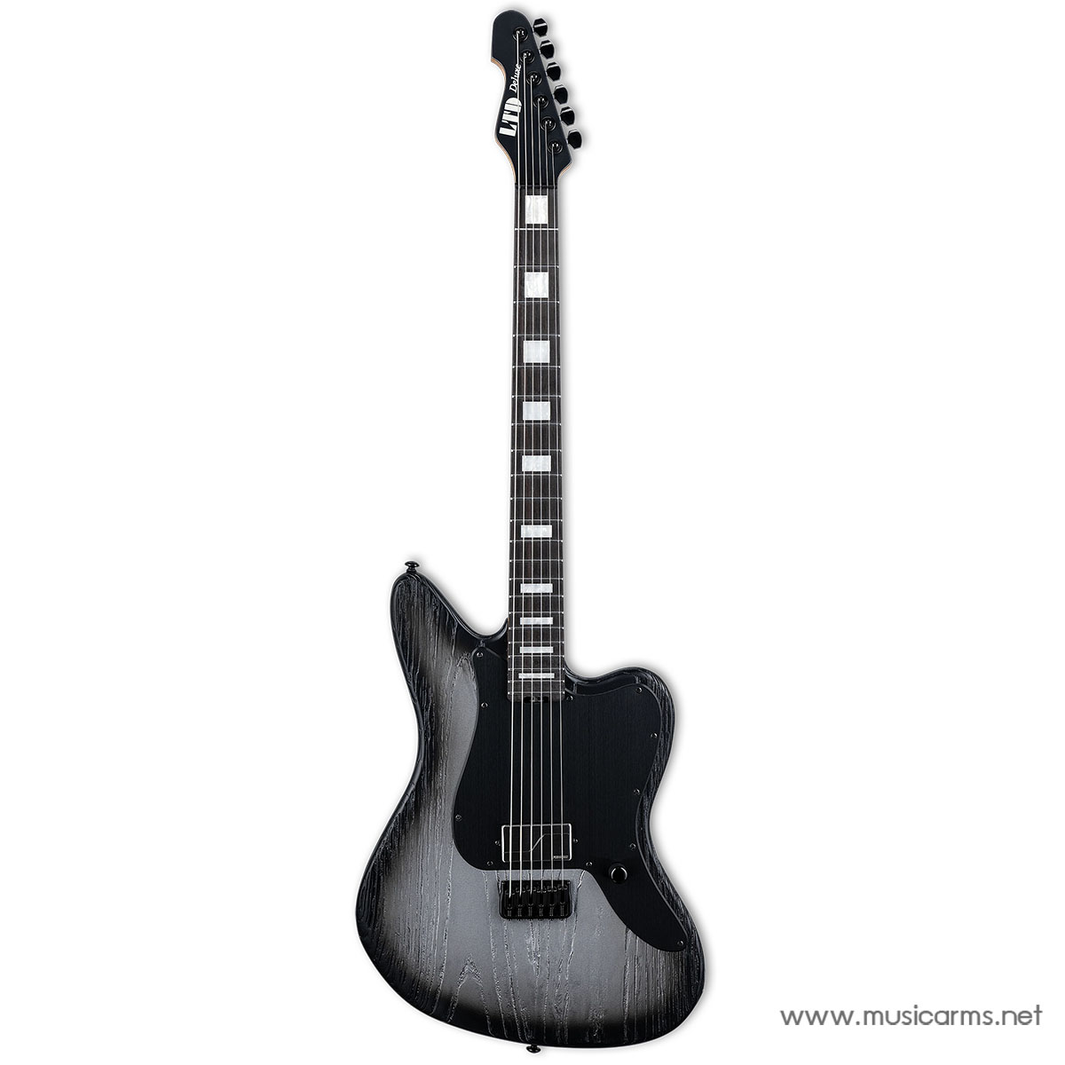 LTD Deluxe XJ-1 Baritone คือการผสมผสานที่ลงตัวระหว่างรูปลักษณ์สไตล์ Retro Offset ที่มีความคลาสสิก เข้ากับสเปกเครื่องดนตรีสมัยใหม่ที่ออกแบบมาเพื่อชาวร็อคและเมทัลโดยเฉพาะ ด้วยความยาวสเกลแบบบาริโทนขนาด 27 นิ้ว ทำให้กีตาร์ตัวนี้รองรับการตั้งสายต่ำ (Down-tuning) ได้อย่างมีประสิทธิภาพ ให้แรงตึงสายที่เหมาะสมและเสียงที่คมชัดในทุกโน้ต ตัวบอดี้ทำจากไม้ Swamp Ash ที่ผ่านการ Sandblasted จนเห็นลายไม้เด่นชัดในผิวสัมผัส Silver Blast มอบทั้งความสวยงามที่เป็นเอกลักษณ์และความโปร่งของโทนเสียงที่เป็นเลิศ