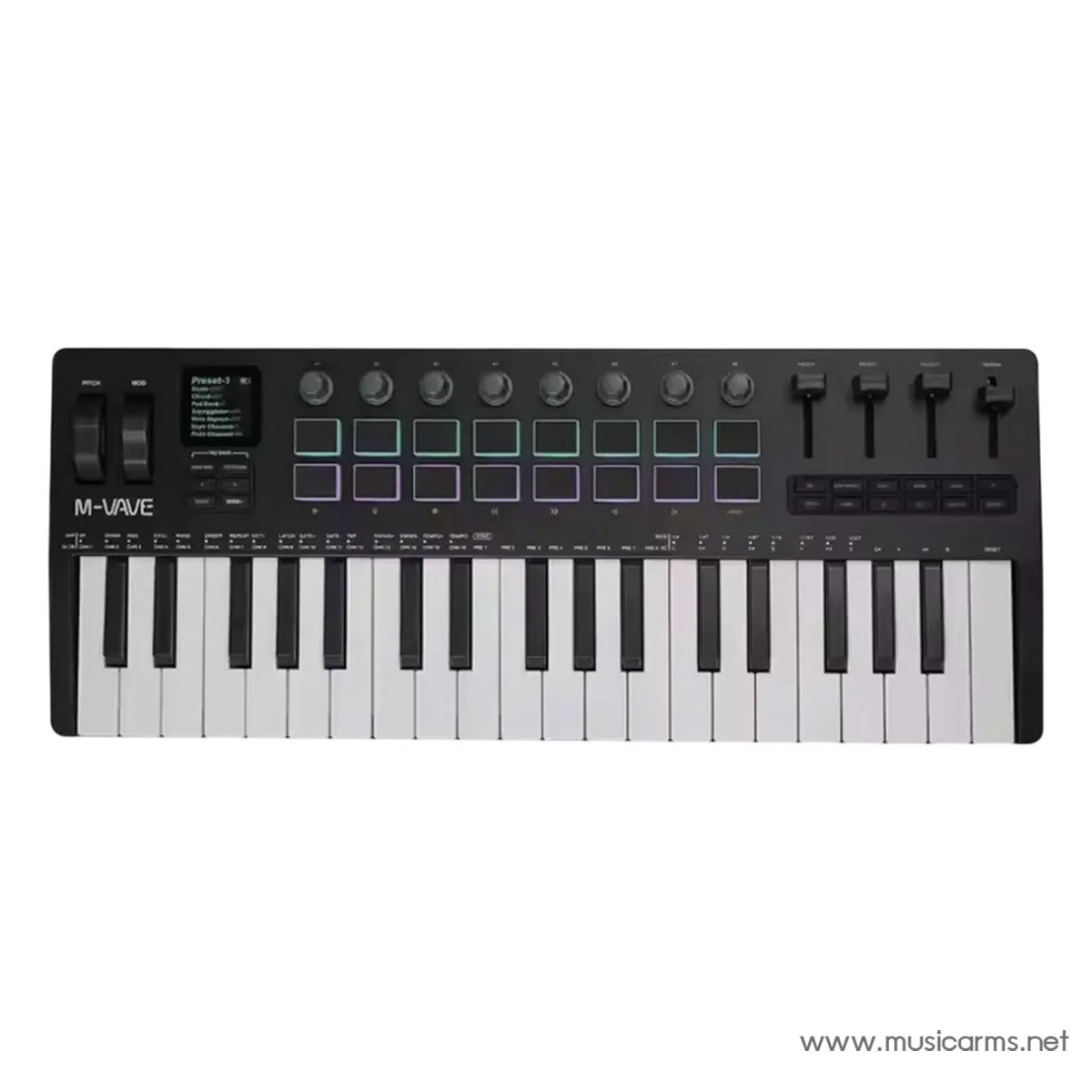 - คีย์บอร์ด MIDI ไวต่อแรงสัมผัส 37 คีย์: ให้ช่วงเสียงสามอ็อกเทฟ เหมาะสำหรับการเล่นไลน์ทำนอง คอร์ด และเบส พร้อมตอบสนองต่อการสัมผัสเพื่อไดนามิกในการแสดงที่สมจริง