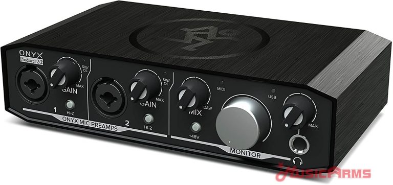 Singer/songwriters and content creators will love the Mackie Onyx Producer 2-2. High-resolution 24-bit/192kHz converters combine with premium analog circuitry to deliver top-notch sound. A pair of boutique-sounding Onyx mic preamps provides excellent fidelity and dynamic range, while their XLR/TRS combo inputs accommodate just about everything. You also get a hi-Z switch on each channel for DI-ing your guitar or bass. Zero-latency direct monitoring and a headphone output make tracking a breeze. And you can hook up your synths, controllers, and other hardware with ease, thanks to built-in MIDI connectivity. Bus-powered for the ultimate in portability, the Onyx Producer 2-2 is a great way to capture any performance.