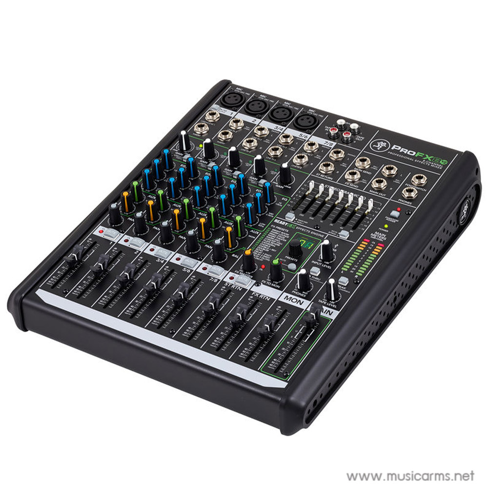 Mackie ProFX8v2 Mixer มิกเซอร์แบบอนาล็อค 8 แชนแนล พร้อมสรรพด้วยช่องเสียบ Mic, Line และ Aux เอฟเฟค Ready FX ที่ทาง Mackie คิดค้นขึ้นมา เป็นเอฟเฟค Reverb, Delay และ Chorus 16 แบบในตัว พร้อมด้วยระบบ Low-noise Mackie Vita ช่วยลดเสียงรบกวน สามารถปรับ EQ ได้ตามต้องการเพื่อให้คุณภาพเสียงออกมาดีที่สุด โดยระบบเสียงจะเป็นแบบสเตอริโอ สามารถต่อเข้ากับกีต้าร์หรือเบสตรงๆโดยช่องเสียบแบบ Hi-Z Input เอนกประสงค์ครบเครื่อง ดีไซด์สวยงามพร้อม ABS กันกระแทก ให้คุณใช้งานได้อย่างมั่นใจเต็มประสิทธิภาพ