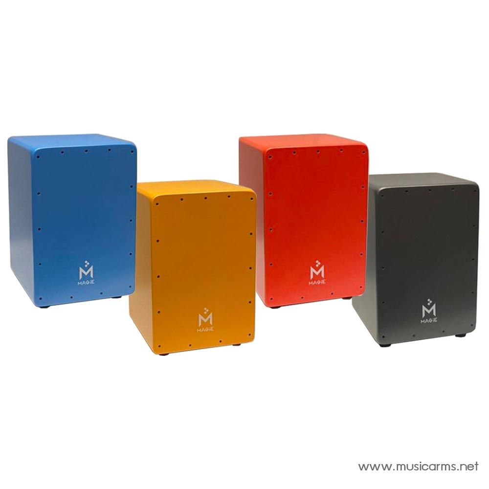 Magie Cajon MC38 กลองคาฮองที่ผลิตจากไม้ Medium Density Fiberboard (MDF) ผ่านมาตรฐาน CARB-P2 ติดตั้งชุดสายสแนร์ 2ชุด ชุดละ20เส้น ชุบโครเมี่ยม ปลอดสนิม ให้เสียงสแนร์คมชัด พร้อมขายางกันลื่น มีความมั่นคงแข็งแรง แผ่นหน้าสีสันสดใสให้เลือกหลากหลาย