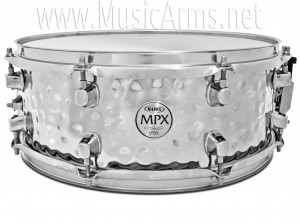 The Mapex MPX Hammered Steel Snare Drum is well-equipped to stand out in any playing situation. The drum’s unique looking hammered, .0 millimeter steel shell provides bright crisp highs, punchy focused mids, and full-bodied lows. The snare drum shell is adorned with chrome hardware and low-mass lugs. Mapex delivers the MPX Hammered Steel Snare Drum with fully adjustable throw-off and Remo UX drumheads.