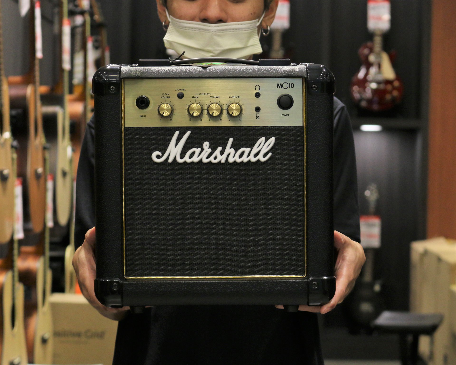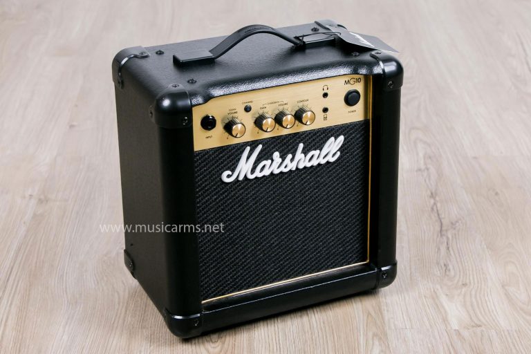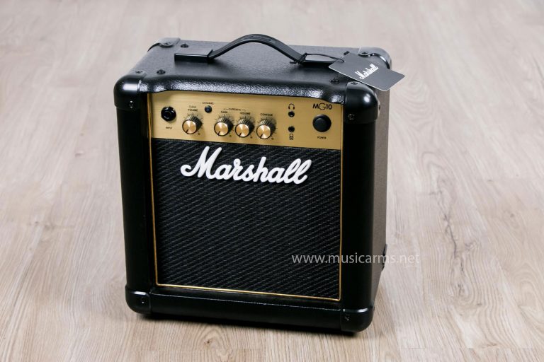 Marshall MG10G แอมป์ประเภท Solid State จากค่ายดังอย่าง Marshall ที่คุ้นเคยกันในคุณภาพอยู่แล้ว รุ่นนี้เป็นแอมป์ขนาดเล็กน้ำหนักแค่ 4.8 กก. แต่คุณภาพดีเกินขนาดตัว เริ่มที่ดอกลำโพงขนาด 6.5 นิ้ว ให้เสียงทรงพลัง เสียงคลีนหวายใสสไตล์มาร์แชลในขณะที่เสียงแตกก็ดุดันสมแบรนด์ ฟังค์ชั่นที่มีมาให้ในแผงควบคุมจะปรับโซลุ่มแบบแยกส่วนกันเลย สามารถปรับระดับเสียงแตกได้รวมไปถึงมีปุ่ม Contour ที่ช่วยขับย่านเสียงกลางให้เด่นขึ้นมาอีกด้วย ซื้อตัวเดียวพร้อมใช้งานได้ทันที แบบนี้มือกีต้าร์ทั้งหลายต้องถูกใจอย่างแน่นอน