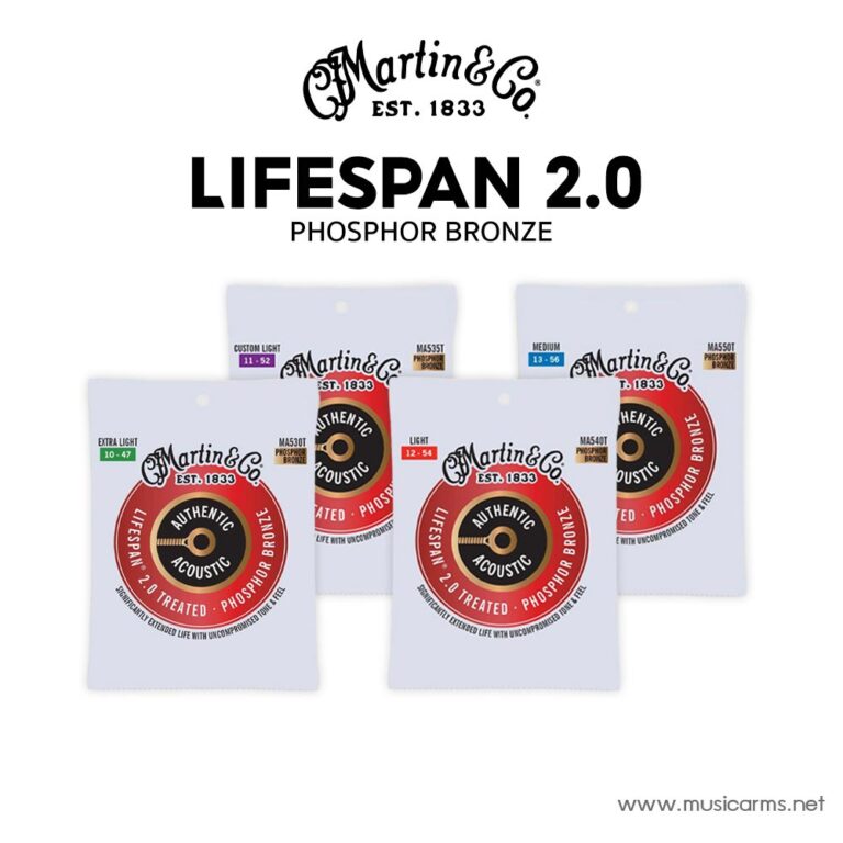 Martin Lifespan 2.0 Treated Phosphor Bronze สายกีต้าร์โปร่งเจเนอเรชันใหม่ที่ออกแบบมาโดยเฉพาะเพื่อมอบโทนเสียงที่ยอดเยี่ยมและอายุการใช้งานยาวนาน ออกแบบทางวิศวกรรมด้วยการรักษาป้องกันการกัดกร่อนที่ได้รับการจดสิทธิบัตรเฉพาะจาก Martin เท่านั้น สายเหล่านี้ให้การป้องกันการกัดกร่อนที่เหนือกว่า โดยไม่สูญเสียเสียงที่หนักแน่นและมีชีวิตชีวาซึ่งเป็นที่รู้จักกันดีของ Martin