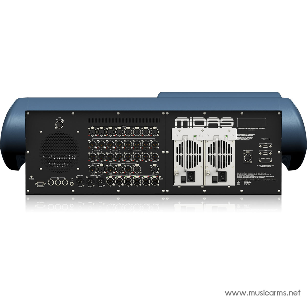 - อินพุตและเอาต์พุตเสียงดิจิทัล: AES3 Inputs, AES3 Outputs, AES50 Audio, Ethernet Control Data, Word Clock Input, Word Clock Output, Video Sync Input, AES3 Sync Input, AES3 Sync Output