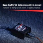 วงจรแอคทีฟแบบแยกส่วนที่มีบัฟเฟอร์สองตัวนี้ถูกออกแบบมาเพื่อให้การทำงานที่มีความแม่นยำและมีประสิทธิภาพสูง โดยใช้บัฟเฟอร์สองตัวเพื่อเสริมความเสถียรของสัญญาณและป้องกันการสูญเสียหรือการเปลี่ยนแปลงของสัญญาณที่อาจเกิดขึ้นระหว่างการส่งผ่าน นอกจากนี้ วงจรนี้ใช้ไฟฟ้า 48V ฟานทอมพาวเวอร์ในการทำงาน ซึ่งหมายความว่าไม่จำเป็นต้องใช้แบตเตอรี่ในการจ่ายไฟ เพียงแค่เชื่อมต่อกับแหล่งจ่ายไฟฟ้า 48V ที่ใช้กับไมโครโฟนและอุปกรณ์เสียงอื่น ๆ ก็เพียงพอแล้ว การออกแบบแบบแยกส่วนยังช่วยลดปัญหาการรบกวนจากภายนอกและทำให้เสียงที่ได้มีความชัดเจนและมีคุณภาพสูง