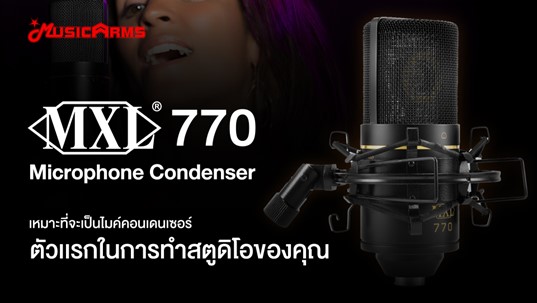 หากคุณเป็นนักดนตรีที่กำลังเริ่มหัดทำเพลงหรือการทำสตูดิโอเล็ก ๆ ที่บ้านขนาดย่อม ๆ เพื่อเป็นการเริ่มต้นในการเป็นศิลปินของคุณ หรือจะทำเพื่อเป็นงานอดิเรกที่ทำในเวลาว่างหลังเสร็จภารกิจประจำวันของคุณจะด้วยเหตุผลอะไรก็ตาม วันนี้ Music Arms จะมาแนะนำไมค์คอนเดนเซอร์ตัวที่จะเหมาะเป็นไมค์สำหรับเริ่มต้นไปจนถึงการทำงานระดับอาชีพที่มีความสามารถแบบครบครัน วันนี้เราจะมาพูดถึงข้อดีของ MXL 770 ไมค์คอนเดนเซอร์ที่เหมาะจะเป็นไมค์ตัวแรกในการทำสตูดิโอของคุณกันครับ