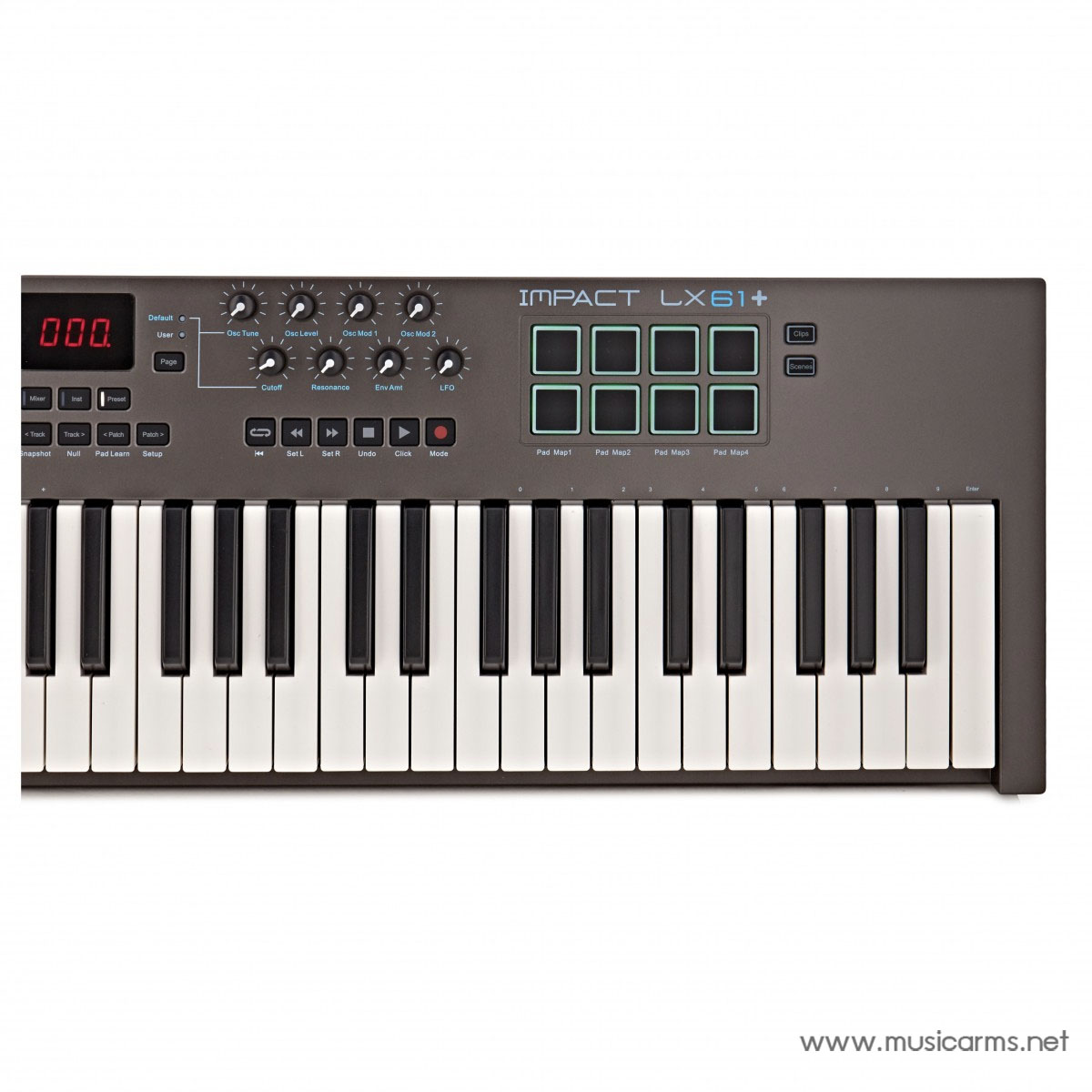 คุณสมบัติการตอบสนองต่อแรงกดของคีย์บอร์ดช่วยเพิ่มความลื่นไหลและสัมผัสที่เป็นธรรมชาติในการเล่น Impact LX61+ ซึ่งเหมาะอย่างยิ่งสำหรับการเปลี่ยนผ่านจากเครื่องดนตรีอะคูสติกอย่างเปียโนมาสู่คีย์บอร์ด MIDI นอกจากนี้ยังช่วยเพิ่มไดนามิกให้กับเพลงของคุณได้อย่างง่ายดาย ไม่ว่าจะเป็นการบรรเลงโน้ตที่นุ่มนวลละเอียดอ่อน ไปจนถึงการเล่นคอร์ดที่ทรงพลังและหนักแน่น แป้นแพด (Pads) แบบ LED 8 จุด ยังตอบสนองต่อแรงกดเช่นกัน และเหมาะอย่างยิ่งสำหรับการทริกเกอร์แซมเพิลต่างๆ เช่น เสียงร้องหรือกลอง คุณลักษณะนี้มอบทางเลือกในการป้อนเสียงที่หลากหลาย ไม่ว่าคุณจะใช้แป้นแพดเหมือนเป็นเครื่องตีกลอง (drum machine) หรือใช้รูปแบบตารางของแป้นแพดในการสร้างไลน์เบส