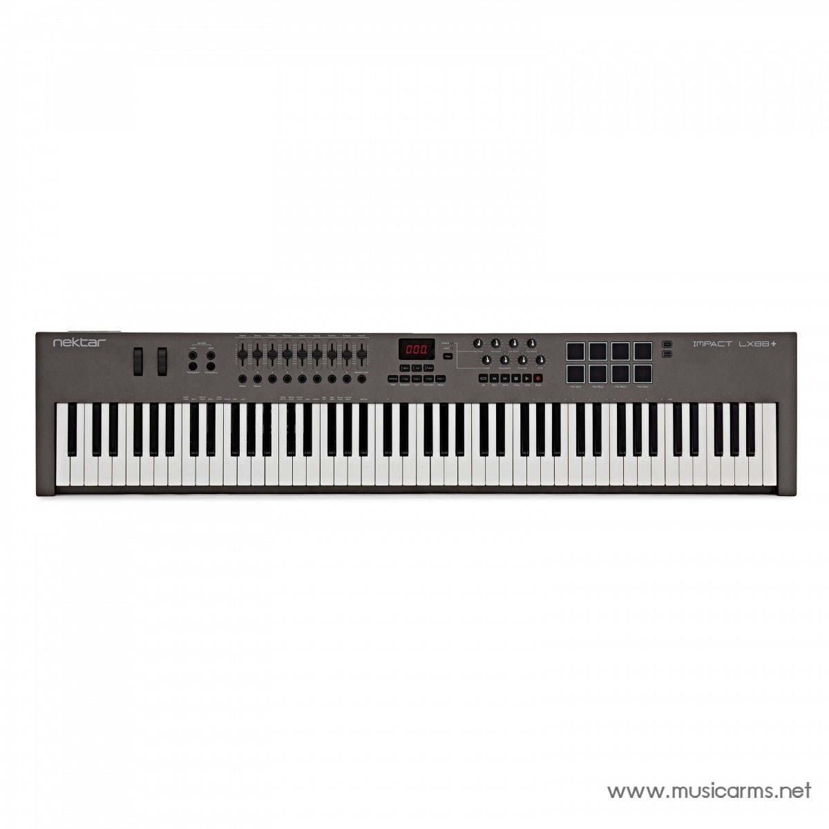 Nektar Impact LX88+ คือคีย์บอร์ด MIDI อเนกประสงค์ขนาด 88 คีย์ที่ถูกออกแบบมาเพื่อมอบการควบคุม Digital Audio Workstation (DAW) ที่คุณชื่นชอบได้อย่างครบถ้วนและสมบูรณ์แบบที่สุด มอบทุกสิ่งที่นักดนตรีและโปรดิวเซอร์ต้องการ พร้อมด้วยคุณสมบัติเพิ่มเติมที่จะช่วยยกระดับขั้นตอนการทำงานและประสบการณ์การสร้างสรรค์ดนตรีของคุณไปอีกขั้น การออกแบบตามหลักสรีรศาสตร์ของ Impact LX88+ นั้นมุ่งเน้นการใช้งานจริง โดยจัดวางทุกสิ่งที่จำเป็นไว้บนตัวคีย์บอร์ดเองอย่างครบถ้วน ซึ่งช่วยลดความจำเป็นในการสลับไปมาระหว่างการควบคุมซอฟต์แวร์และการควบคุมฮาร์ดแวร์ เมื่อคุณต้องการสร้างสรรค์เสียงหรือเอฟเฟกต์เฉพาะอย่าง ทำให้คุณสามารถจดจ่ออยู่กับการสร้างสรรค์ได้อย่างเต็มที่ แป้นคีย์บอร์ด 88 โน้ต ที่ตอบสนองต่อแรงกด (Velocity Sensitive) มีจำนวนที่ครบถ้วนเทียบเท่าเปียโนมาตรฐาน ทำให้คุณสามารถครอบคลุมช่วงเสียงได้ทั้งหมด