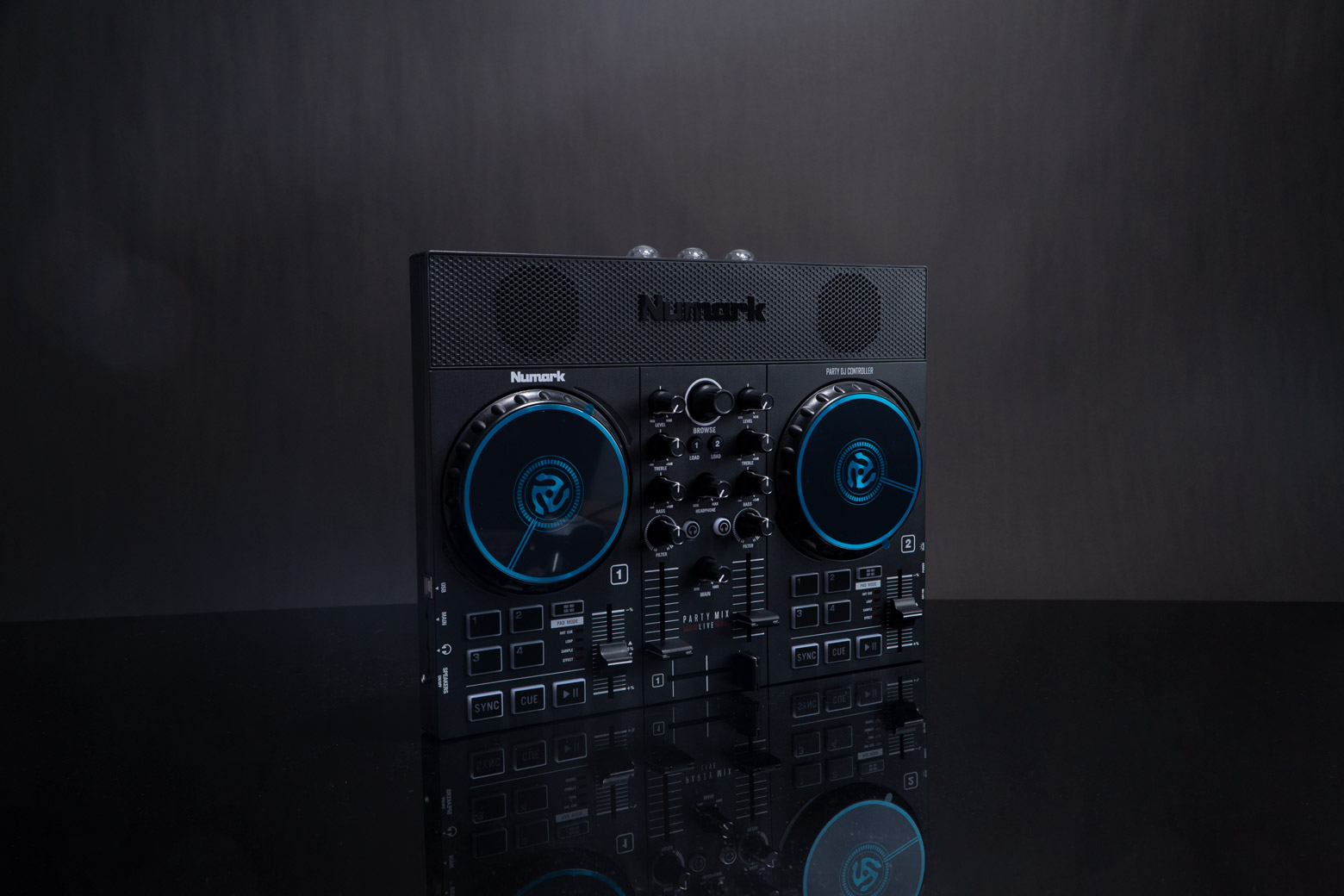 Party Mix Live พร้อมสำหรับการดำเนินการโดยไม่จำเป็นต้องเชื่อมต่อลำโพงภายนอก สวิตช์เปิด/ปิดลำโพงช่วยให้คุณเติมเต็มห้องด้วยเสียงสเตอริโอคุณภาพ หรือปิดลำโพงในตัวได้อย่างง่ายดายเพื่อให้มิกซ์เสียงในหูฟังของคุณ มีปุ่มซิงค์ ซึ่งจะจับคู่จังหวะของแทร็คในแต่ละเด็คโดยอัตโนมัติเพื่อการมิกซ์ที่สอดคล้องอย่างสมบูรณ์แบบ ปุ่มฟิลเตอร์ขนาดใหญ่สำหรับแต่ละเด็คช่วยเพิ่มคุณภาพเสียงระดับมืออาชีพให้กับมิกซ์ ทุกเพลงฮอตอยู่แค่เพียงปลายนิ้วสัมผัส