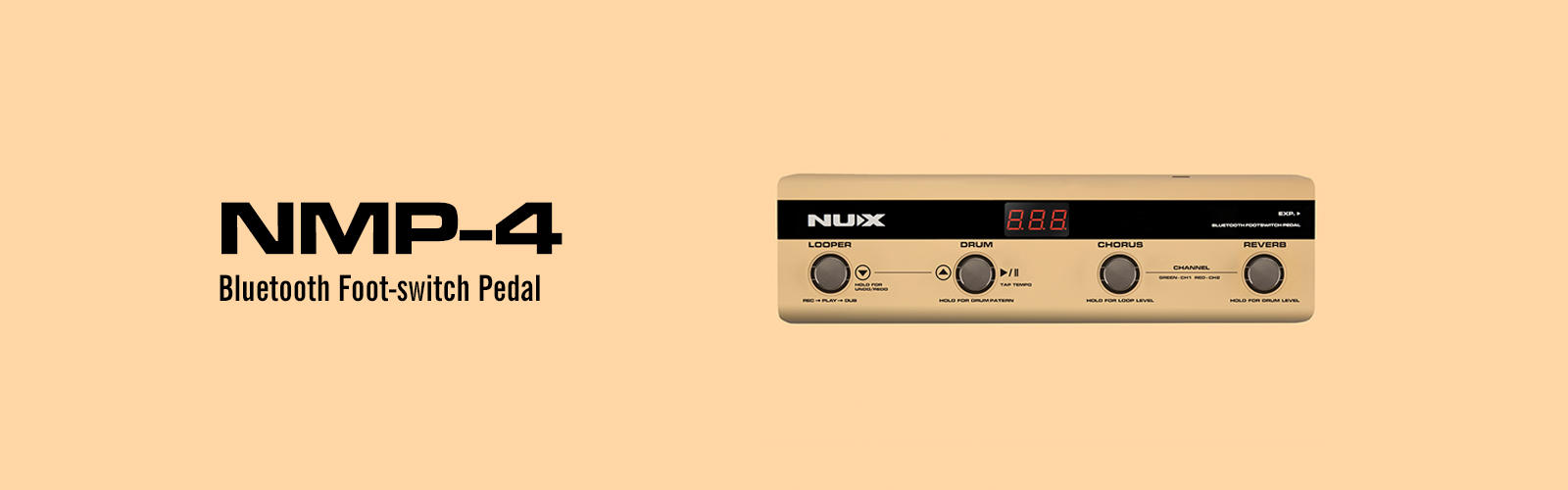 Nux Stageman NMP-4 ฟุตสวิทช์แบบ Bluretooth ที่ใช้ร่วมกับแอมป์โปร่งของ Nux โดยจะใช้เป็นตัวควบคุมเอฟเฟค Loop หรือชุดกลองในตัว นอกจากนี้ยังสามารถควบคุมการตั้งค่าเอฟเฟค Reverb และ Chorus ของตัวแอมป์ได้อีกด้วย ตัวเดียวเอาอยู่หมด น้ำหนักเบาพกพาไปได้ทุกที่ ใครทีมีแอมป์โปร่งของ Nux แล้วต้องไม่พลาดการควบคุมได้ด้วยฟุตสวิทช์ตัวเดียว
