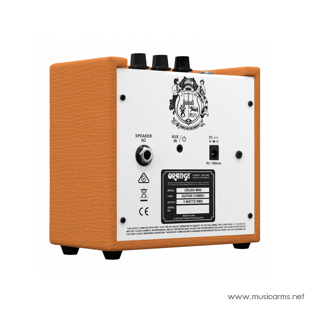 ORANGE Crush Mini ออกแบบมาเพื่อให้โทนเสียงอันทรงพลัง ดีไซด์สีส้มคลาสสิกในแพ็คเกจขนาดเล็กน้ำหนักเบา การควบคุมง่ายๆ ให้คุณเข้าถึงเสียงได้ทุกประเภท ปรับแต่งการควบคุมอย่างรวดเร็ว คุณสมบัติที่น่าตื่นเต้นอีกอย่างของ Crush Mini คือเอาต์พุตของลำโพง (8 โอห์ม) ได้เสียงที่กระหึ่มจนน่าตกใจ Crush Mini มีจูนเนอร์ในตัว เช่นเดียวกับเอาต์พุตหูฟังที่ปิดเสียงลำโพงเพื่อการฝึกซ้อมที่ไร้เสียง สามารถเล่นไปพร้อมกับเพลงโปรดของคุณโดยใช้ Aux In