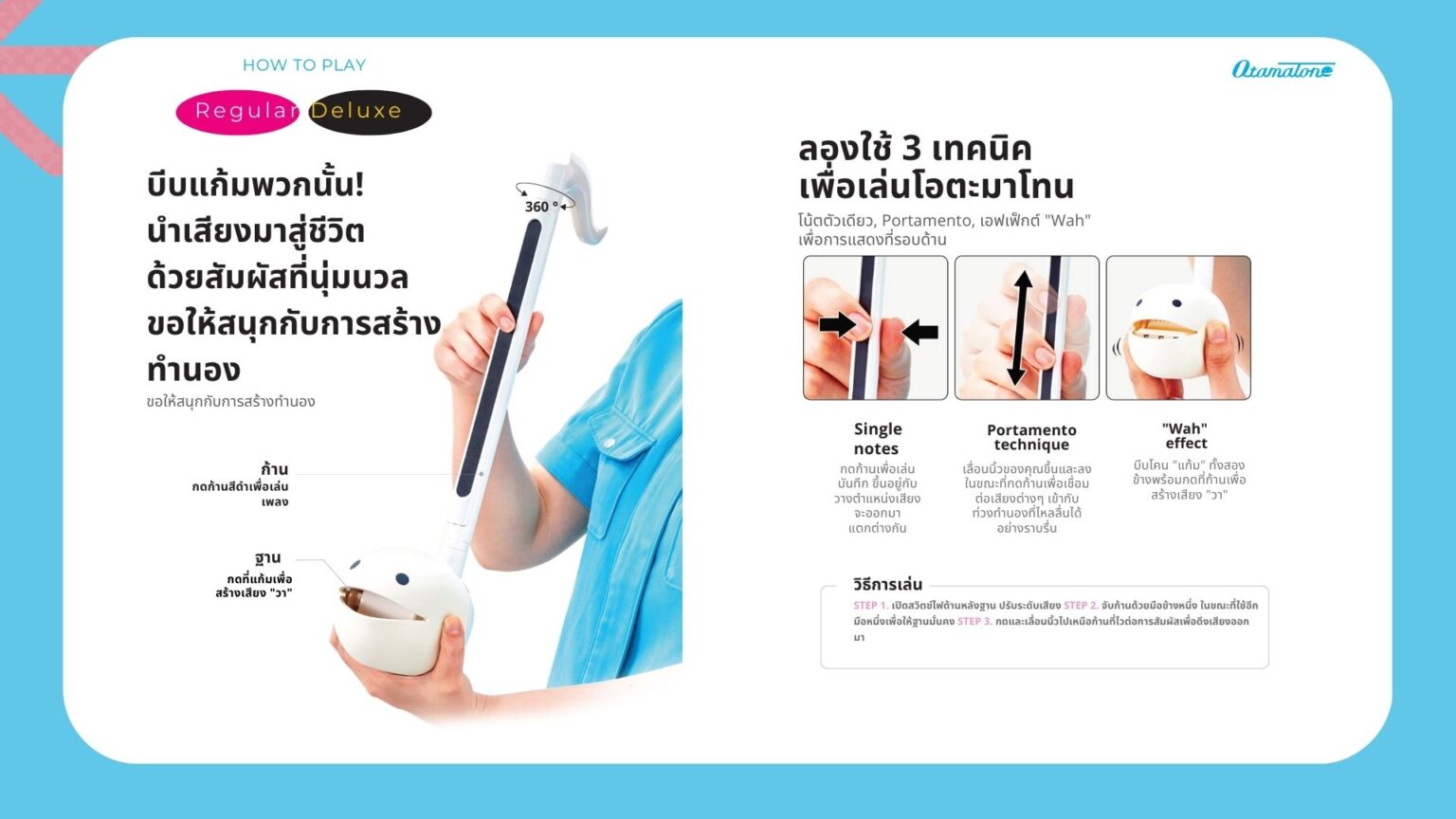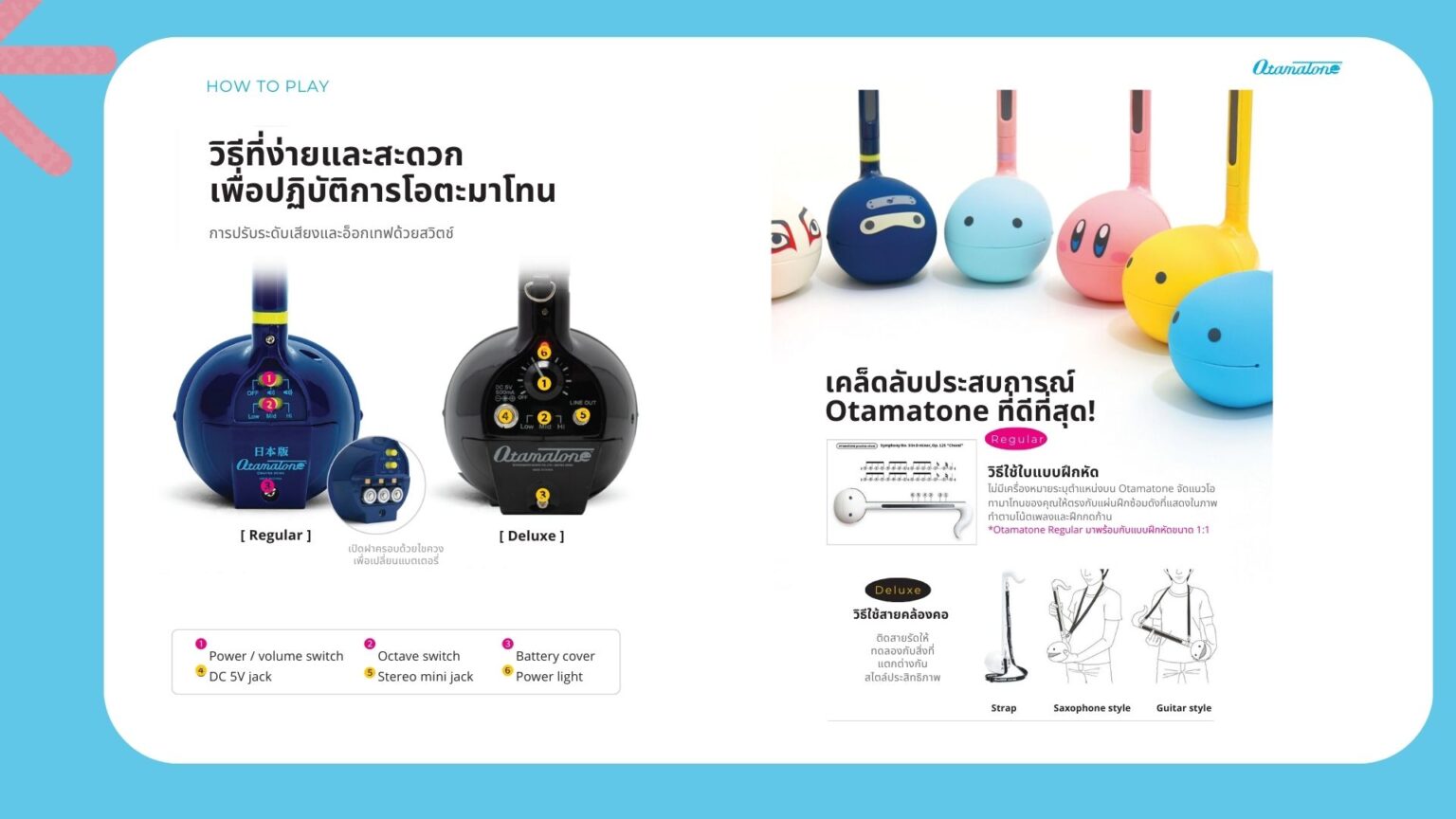 Otamatone ไม่ใช่แค่ของเล่น แต่เป็นเครื่องดนตรีที่เท่ และทันสมัยที่ใครๆ ก็เล่นได้ ไม่ว่าจะเป็นเด็กหรือผู้ใหญ่ ก็สามารถเล่นเพื่อเรียนรู้ดนตรีในรูปแบบที่สนุกสนานและสร้างสรรค์ ด้วยการเรียนรู้ที่ง่ายดาย จึงเหมาะสำหรับทั้งผู้เริ่มต้นและนักดนตรีที่มีประสบการณ์