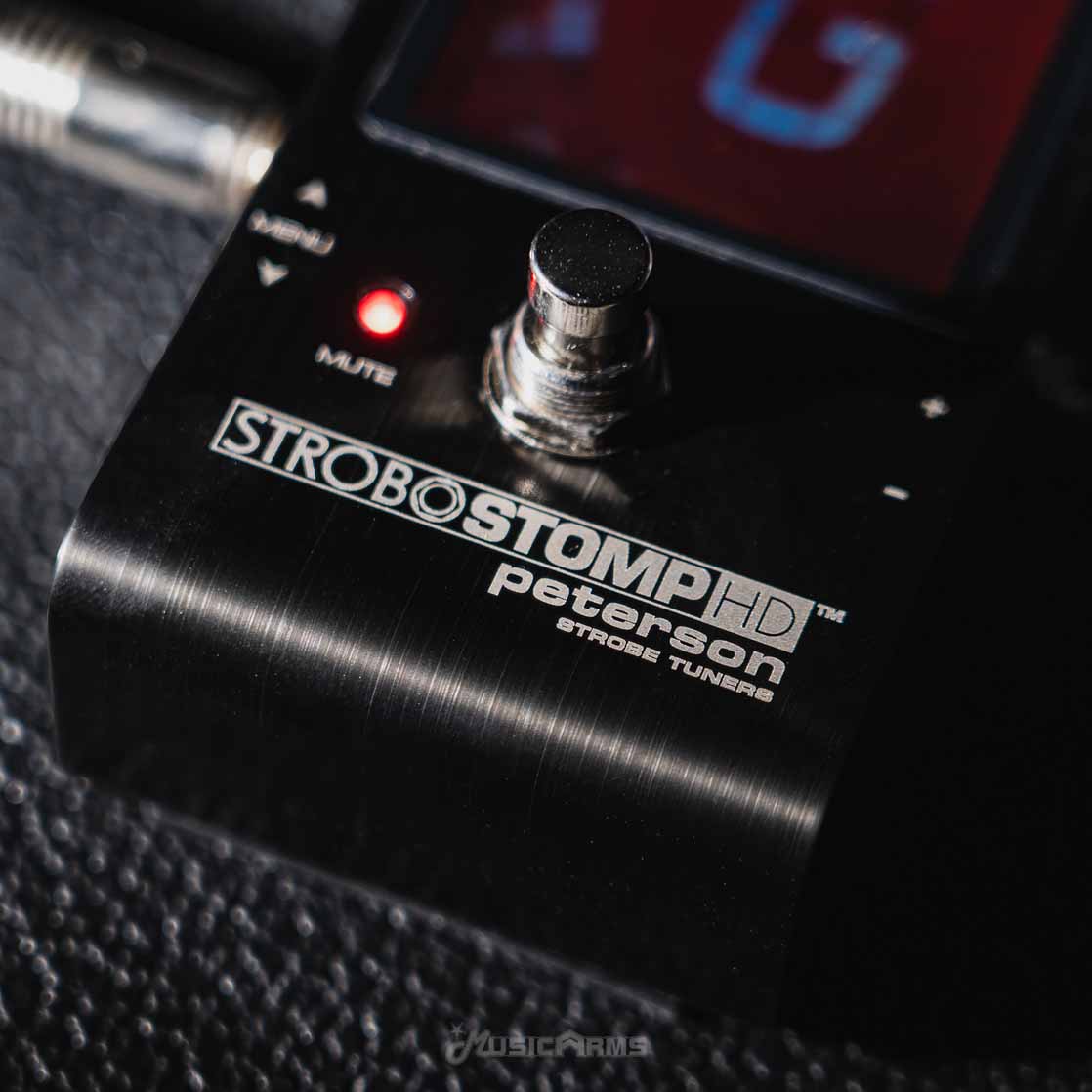 Peterson Tuners StroboStomp HD Pedal Tuner มอบเทคโนโลยีการตั้งสายที่ปฏิวัติวงการสำหรับนักกีตาร์, นักเบส และนักดนตรีทุกประเภท ด้วยหน้าจอ LCD ความละเอียดสูงพร้อมไฟแบ็คไลท์ LED ที่ปรับเปลี่ยนสีได้ StroboStomp HD มอบอินเทอร์เฟซที่อ่านง่าย พร้อมสีที่ผู้ใช้เลือกได้เพื่อให้เข้ากับสภาพแสงโดยรอบ StroboStomp HD มอบความแม่นยำที่เหนือชั้นถึง ของครึ่งเสียง หรือ ของเฟรต ด้วยช่วงความถี่ $391$Hz ถึง $490$Hz