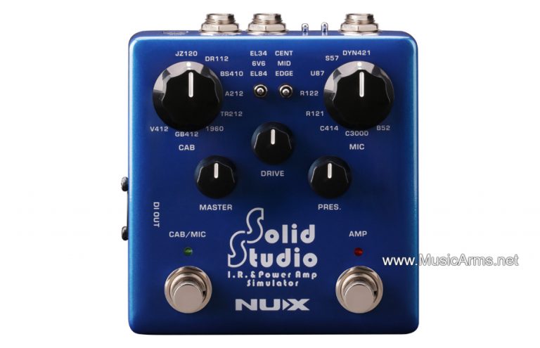 Power Amp Nux Solid Studio(NSS-5) เอฟเฟคที่มาพร้อมกับการจำลองเสียงตู้ลำโพง 8 ตัว ทุกรุ่นภายใน Solid Studio ให้เสียงและความรู้สึกที่ยอดเยี่ยมเหมือนของแท้ และมีไมโครโฟน 8 รุ่นที่สามารถใช้ร่วมกับตู้ใดก็ได้ นอกจากนี้ยังสามารถปรับตำแหน่งไมโครโฟนเพื่อการรับเสียงที่ดีที่สุด วาง Solid Studio ที่ส่วนท้ายของแป้นเหยียบและส่งเสียงจำลองไปยังมิกเซอร์ในขณะที่สามารถส่งสัญญาณดั้งเดิมไปยังแอมป์ได้ เป็นตัวเลือกอื่นสำหรับการเชื่อมต่อไมค์แอมป์ / ตู้บนเวที