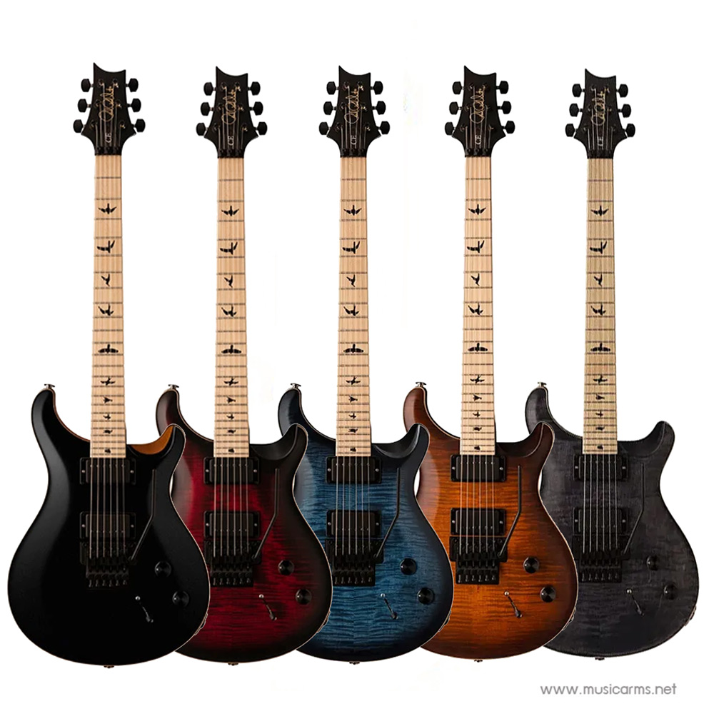 The DW CE 24 Floyd model starts with the PRS CE bolt-on platform and includes a satin-finished maple neck, maple fretboard, a slightly modified Pattern Thin neck carve (Waring’s carve is slightly thinner front to back), and Floyd Rose tremolo system. The pickups and electronics are also unique to Waring’s signature axe. The pickups are Waring’s signature Mojotone “DW Tomahawk” pickups. Made with a blend of Ceramic and Alnico magnets and a special winding technique, DW Tomahawks have plenty of output and big bottom end while remaining articulate and clear – a unique quality for high gain pickups. Paired with a volume and tone control and 5-way blade pickup selector that have been shifted slightly to allow plenty of room to work the tremolo, the DW CE 24 “Floyd” is comfortable, fun, and inspiring to play. The DW CE 24 “Floyd” comes with satin black hardware and is available in five color options, including Waring’s signature finish: Waring Burst.