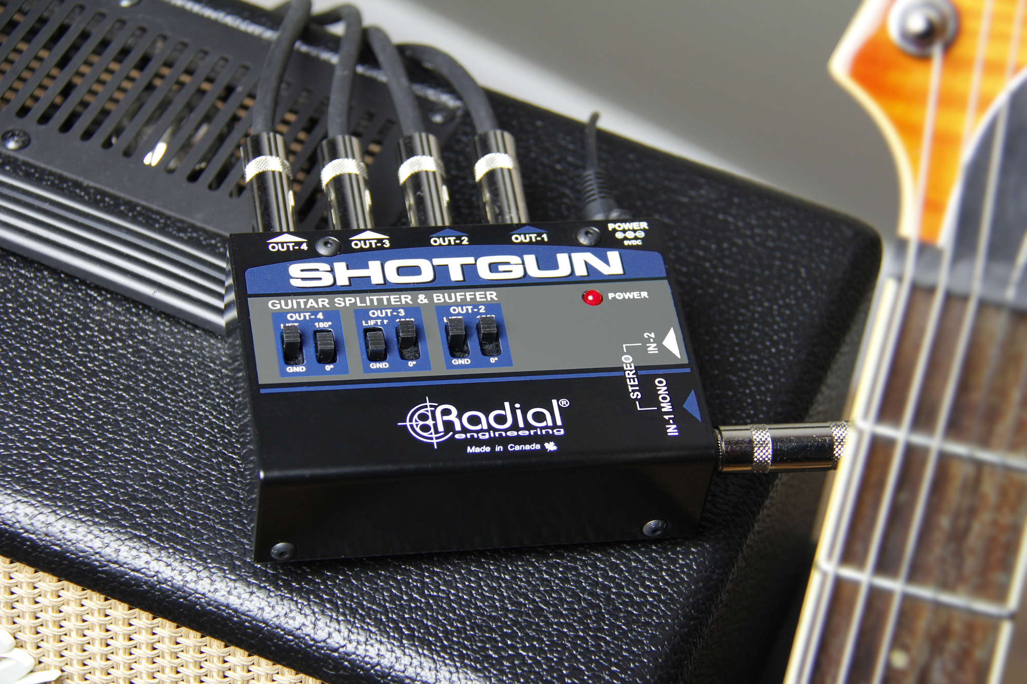 Radial Shotgun คือบัฟเฟอร์สัญญาณระดับกีตาร์ขนาดกะทัดรัดที่ออกแบบมาเพื่อขับเคลื่อนแอมป์ได้สูงสุดถึงสี่ตัวพร้อมกัน และยังสามารถจัดวางบนบอร์ดเอฟเฟกต์ได้อย่างง่ายดาย