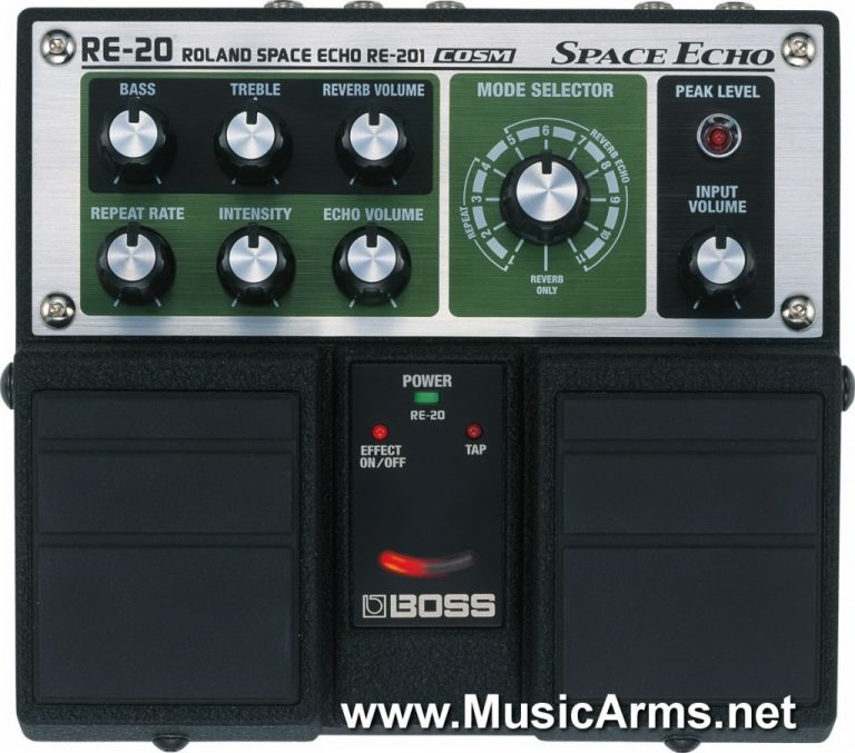 RE-20 Space Echo Boss – เป็นหนึ่งในเอฟเฟคที่ให้เสียง Echo ที่ดี โดยได้พัฒนามาจาก Roland RE-20 Space Echo จนมาเป็น RE-20 และได้เสียงที่คลาสสิกและไพเราะจาก RE-20 และ lost in space มือกีต้าร์ไม่ควรมีไว้ในครอบครอง !!