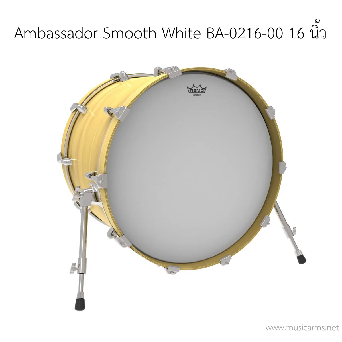 หนังกลอง Remo รุ่น Ambassador Smooth White BA-0216-00 ขนาด 16 นิ้ว (Batter/Resonant Head) หนังชั้นเดียว สำหรับด้านตี/ด้านล่าง