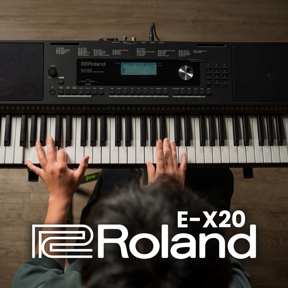 Roland E-X20 คีย์บอร์ดรุ่นใหม่ที่ออกมาพร้อมกับลูกเล่นด้านเสียงมากมาย จำนวนแป้นคีย์ 61 แป้น ตามมาตรฐาน สามารถทำเสียงโพลีโฟนีได้ถึง 128 เสียง มีคอรัสกับรีเวิร์ปเป็นลูกเล่นเพิ่ม รุ่นนี้จะพัฒนาขึ้นโดยการตัดส่วน MIDI ออกไปและใช้งานเชื่อมต่ออุปกรณ์ต่างๆผ่าน USB อย่างเต็มรูปแบบ เล่นไฟล์ .wav และ MP3 ตามมาตรฐาน น้ำหนักเบาสบายสามารถพกพาไปได้ทุกที่ ฟังก์ชั่นใช้งานๆต่างๆมีปุ่มลัดพร้อมสรรพสำหรับนักดนตรีที่ต้องการเล่นสด ราคาถูกคุ้มค่าคุณภาพที่ได้รับ น่าจับจองเป็นเจ้าของอย่างมาก
