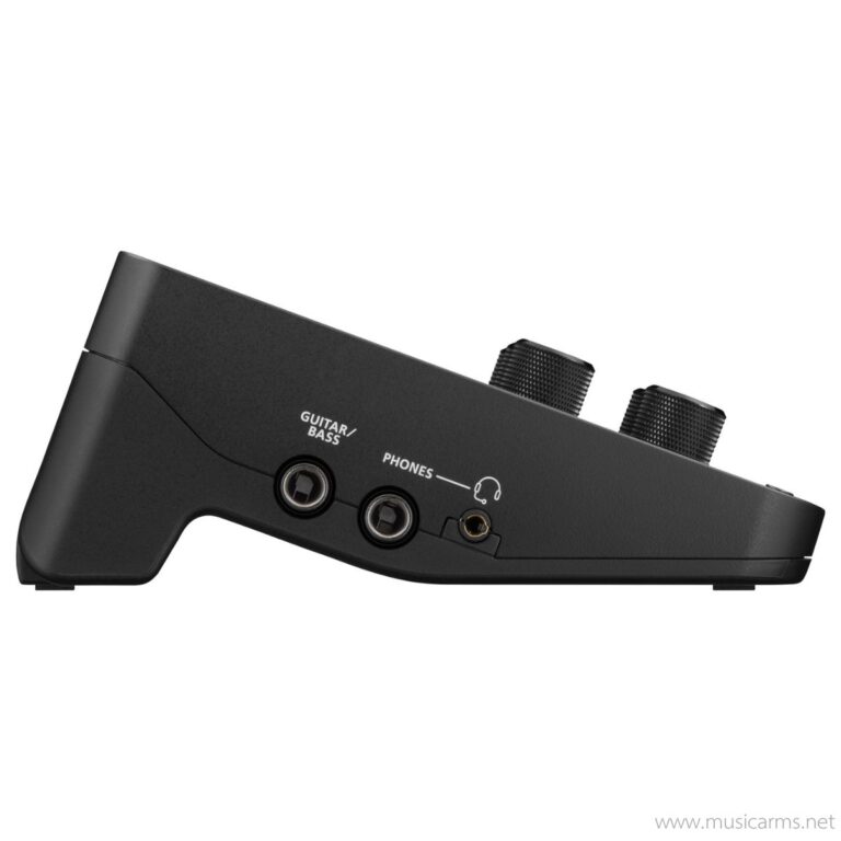 | ช่องต่ออินพุท (Input Connectors) | • MIC/LINE (1, 2): XLR (รองรับ Phantom 48 V) • GUITAR/BASS: แจ็ค 1/4 นิ้ว (Hi-Z) • LINE IN (L, R): แจ็ค 1/4 นิ้ว • AUX: แจ็คสเตอริโอ TRRS |