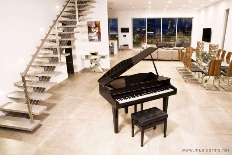 เปียโนแกรนด์ที่โดดเด่นในห้องนั่งเล่น แต่การดูแลรักษา และน้ำหนักที่มากมหาศาลอาจทำให้การเป็นเจ้าของเปียโนกลายเป็นภาระ Roland GP607 มีสีดำมันวาวหรือสีขาวมันวาว ให้รูปลักษณ์ และสัมผัสแบบคลาสสิกของเปียโนแกรนด์ขนาดเล็ก คุณสามารถเริ่มเล่นได้ง่ายๆ เพียงแค่เปิดฝา และกดคีย์ ช่วยให้คุณประหยัดค่าใช้จ่ายในการจูนเสียงประจำ โดยอาศัยโปรเซสเซอร์เสียงภายในเครื่องที่เชื่อถือได้ และโครงตู้ที่น้ำหนักเบา ทำให้ง่ายต่อการเคลื่อนย้ายไปรอบๆ บ้านของคุณ เพื่อหาตำแหน่งที่ลงตัว