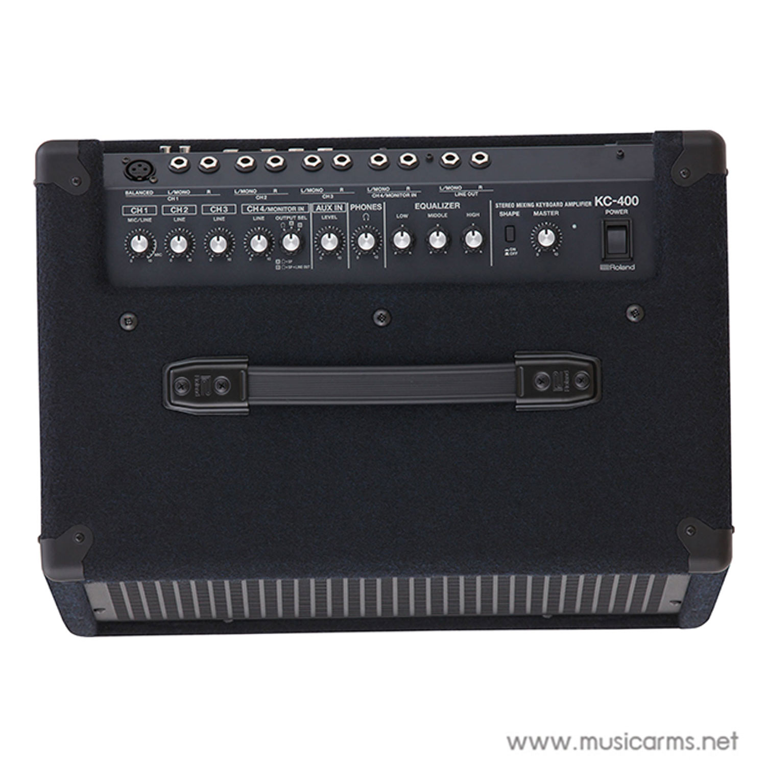 Roland KC-400 แอมป์คีย์บอร์ดเสียงใสๆ มาพร้อมลำโพงขนาด 12 นิ้ว และลำโพงแบบแบบ tweeter ทรงโคน 1 ตัว ให้ย่านเสียงกลางใสโดดเด่น เล่นซาวด์คีย์บอร์ดเพราะ กำลังขับมากถึง 150 วัตต์ ให้เสียงชัดเจน และยังมีถึง 4 แชนแนลในตัว ความพิเศษของรุ่นนี้คือมีช่อง Input ที่รองรับหัวสัญญาณแทบทุกประเภทถึง 13 ช่อง ไม่ว่าจะต่อแบบไหนก็ได้หมด และยังมีอิ Input สเตอริโอเสริมชนิด RCA สำหรับเชื่อมต่อเครื่องเล่นเพลงแบบพกพา และสามารถต่อไมโครโฟนในช่อง XLR ได้ เป็นแอมป์คีย์บอร์ดเอนกประสงค์ที่ใช้งานได้หลากหลาย พร้อมสนุกได้ทุกที่