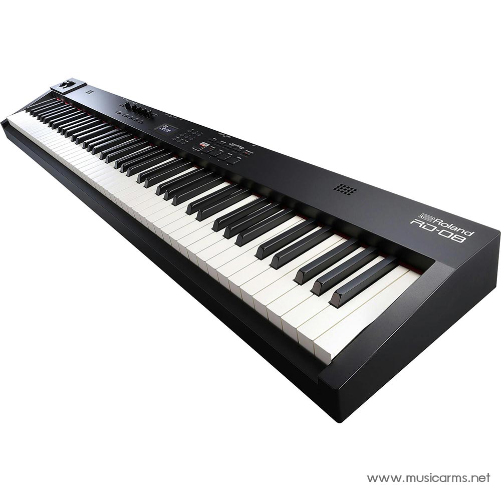 คีย์บอร์ด PHA-4 พร้อมสัมผัสสีงาช้างช่วยให้นักเปียโนได้สัมผัสและแสดงออกอย่างแท้จริง แม้ว่าจะมีกลุ่มเสียง 88 คีย์ครบถ้วน แต่ RD-08 ยังคงมีขนาดกะทัดรัดและน้ำหนักเบาอย่างน่าทึ่ง ทำให้เป็นตัวเลือกในอุดมคติสำหรับนักดนตรีที่ต้องเดินทาง ลำโพงในตัวเพิ่มความอเนกประสงค์ ช่วยให้สามารถฝึกซ้อมหรือแสดงประสิทธิภาพได้โดยไม่จำเป็นต้องขยายเสียงภายนอก โดดเด่นด้วยคอลเลกชันเสียงคุณภาพสูงที่หลากหลาย มอบเสียงที่สมบูรณ์แบบสำหรับทุกประเภท ความเก่งกาจนี้ทำให้มั่นใจได้ว่าคุณสามารถแสดงไอเดียทางดนตรีของคุณได้โดยไม่มีข้อจำกัด