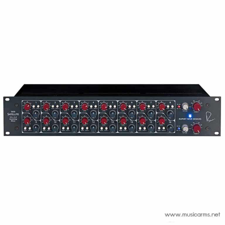The Rupert Neve Designs 5059 Satellite 16 x 2+2 Summing Mixer is an analog mixer with 16 inputs over two 25-pin D-sub cables and dual stereo XLR outputs housed in a 2U rack-mountable chassis. The mixer features class-A amplifiers and a custom transformer circuit design by renowned electronics engineer Rupert Neve.