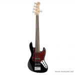 รุ่นเฟรตเลสนี้ของ Sadowsky Vintage J/J Bass มาพร้อมกับการเคลือบสี Solid Black High Polish, ปิ๊กการ์ดสีเต่า (tortoise), และฟิงเกอร์บอร์ดไม้ Tigerstripe Ebony ที่เพิ่มความสวยงามและความทนทานให้กับเครื่องดนตรีนี้