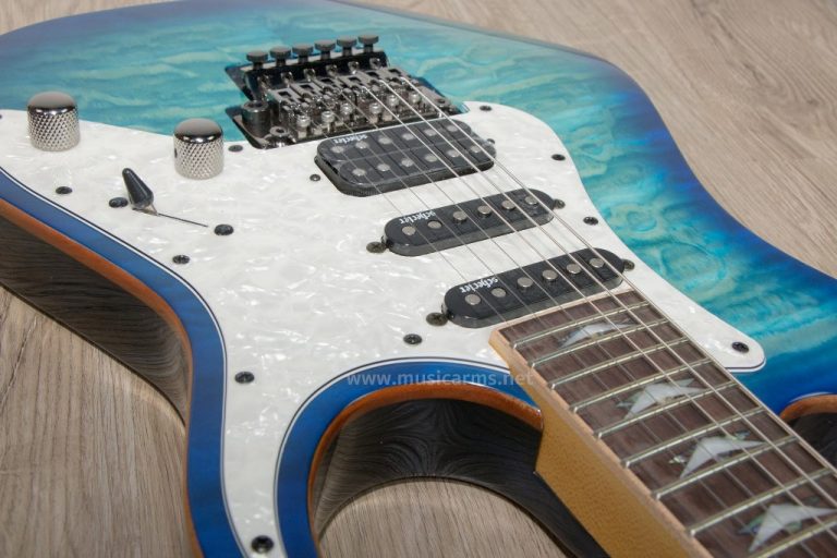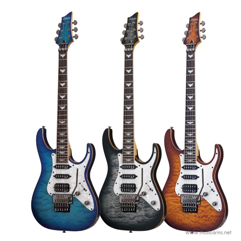Versatile electronics comprise an HSS pickup configuration with a push/pull tone control to that splits the bridge pickup for single-coil sounds. Hardware is top notch and features a Schecter Exclusive Floyd Rose Hot Rod bridge finished in black chrome. Case sold separately.