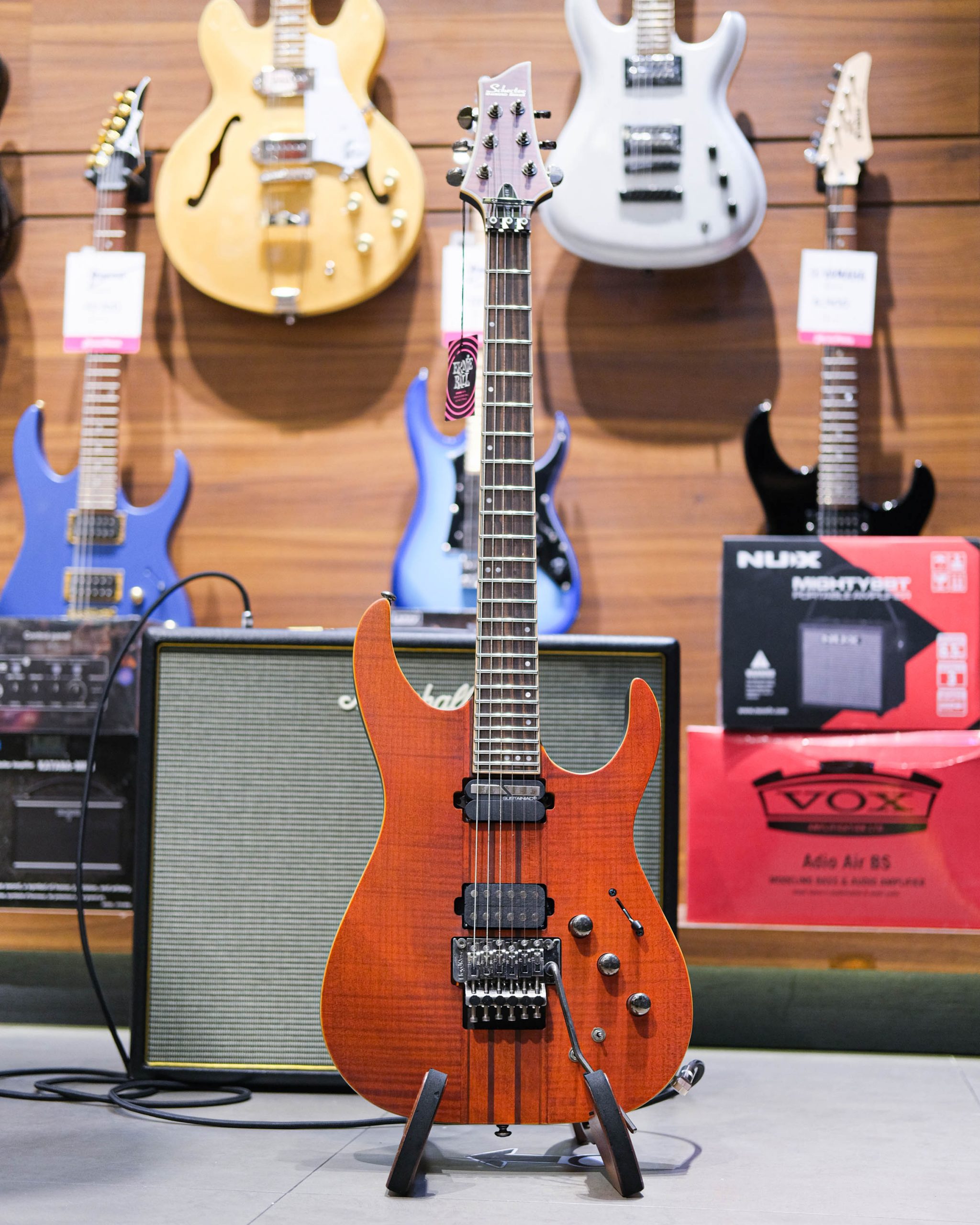 At Sweetwater, we’ve seen more than a few trems come through over the years, from Bigsbys to Floyd Roses. Schecter opted for the Floyd Rose 1500 trem. Its custom knife edge, stainless steel construction, and classic Floyd Rose styling ensure you’ll stay in tune even with the most vigorous trem work