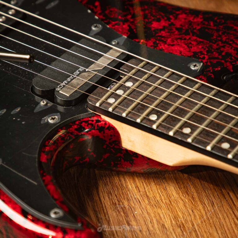 The Super Shredder features a classic “S” style Mahogany body and a thin “C” shape bolt-on Maple neck for a bright, lively tone with plenty of sustain. The Ebony fingerboard brings a fast, snappy attack to the guitar and the 14″ radius lends itself perfectly to fast legato runs and insane string bends.
