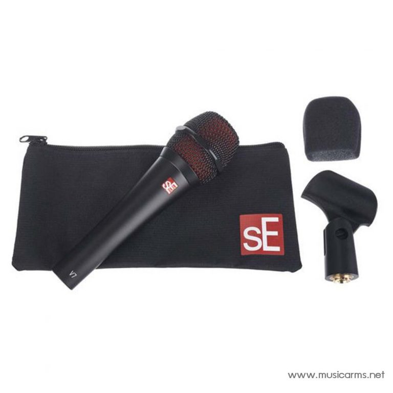 SE Electronics V7 Black ไมโครโฟนไดนามิกสีดำมอบความเที่ยงตรงของเสียงที่ยอดเยี่ยมสำหรับการใช้งานบนเวทีแบบใช้มือถือ เหมาะอย่างยิ่งสำหรับนักร้อง รูปแบบขั้ว supercardioid เพื่อเสียงที่ชัดเจนและคมชัด จับเสียงร้องของคุณด้วยความแม่นยำสูง ทำให้ได้เสียงที่เป็นธรรมชาติแต่เปิดกว้าง นอกจากนี้ยังมีการออกแบบที่แข็งแรง นอกจากนี้ ไมโครโฟนยังมาพร้อมกับอุปกรณ์เสริมมากมาย เช่น คลิปหนีบไมค์ ที่บังลม และกระเป๋าพกพาหนังเทียม