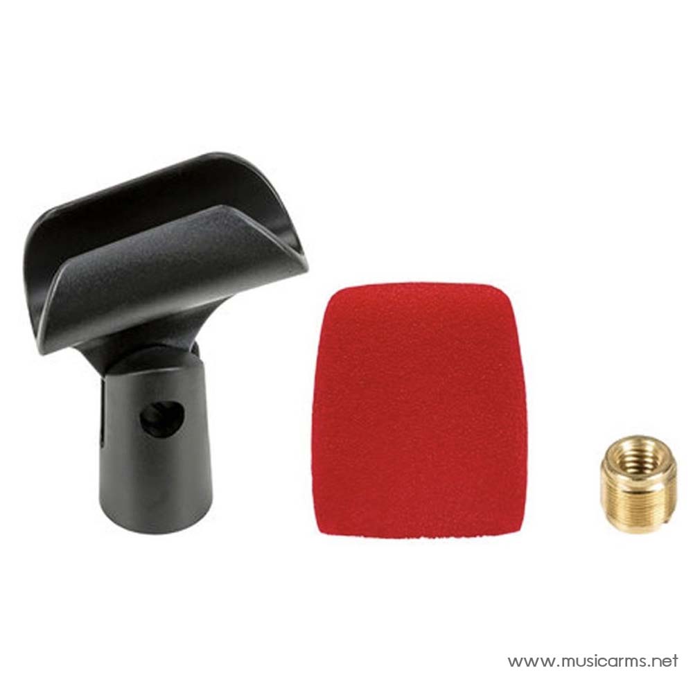 - รวม ที่หนีบไมโครโฟน, กระจกบังลมสีดำในตัว, กระเป๋าใส่ไมโครโฟนและอะแดปเตอร์ด้าย