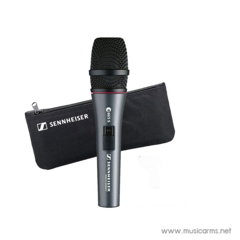 ไมโครโฟน Sennheiser e865s แบบมี Switch on/offเป็นไมค์แบบคอนเด็นเซอร์ Electret Condenser, มีรูปแบบการรับเสียงแบบ Supercardioid Polar Pattern, ตอบสนองความถี่ 40 Hz-20 kHz, Impedence 200 Ohm, Superb transient response, Phantom powering 12-48V, Made in German