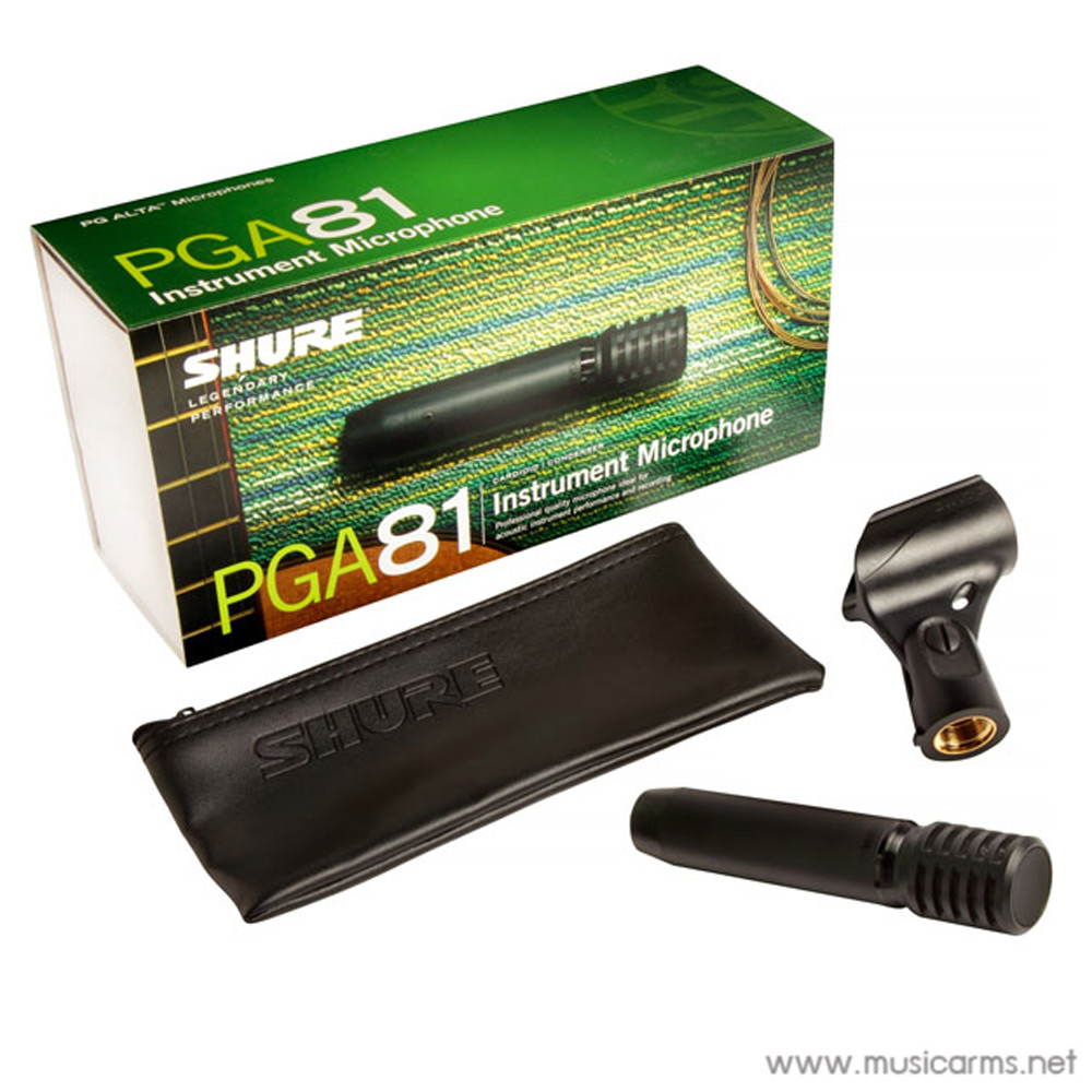 Shure PGA81-LC ไมโครโฟนแบบ Condenser ที่มีความไวต่อการรับเสียงเป็นอย่างมาก ปกติแล้วไมค์ประเภทนี้จะใช้ในห้องอัดที่มีเสียงค่อนข้างเงียบ ดังนั้นเมื่อมาใช้กับเครื่องดนตรีจึงเหมาะกับประเภทอะคูสติค ตอบสนองคลื่นความถี่กว้างตั้งแต่ 40-18000 Hz ขั้วต่อแบบ XLR เชื่อมเข้ากับฐานไมค์ทั่วไปได้สบายๆ ตัวไมค์เป็นแบบเรียวยาวน้ำหนักเบา พกพาง่ายสะดวก ถือเป็นไมโครโฟนที่ห้องอัดนิยมใช้กันอย่างมาก