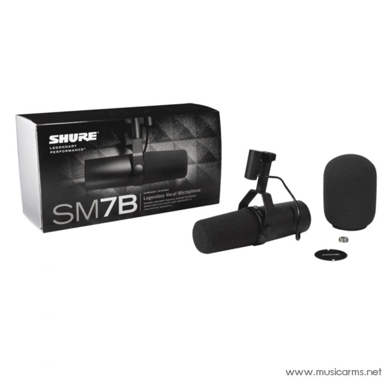 Shure SM7B ไมโครโฟนไดนามิคที่ใช้ในในสตูดิโอพากย์เสียง, ADR, วิทยุ และพอดคาสต์ เชื่อมต่อผ่าน XLR รับเสียงรูปแบบ Cardioid เหมาะกับเสียงและแอปพลิเคชันที่หลากหลายในความถี่ 50Hz-20kHz นอกจากนี้ยังสามารถรองรับความดังได้ถึง 180 เดซิเบล ทำจากโครงสร้างอลูมิเนียมแท้ แข็งแรงทนทาน เหมาะกับการใช้งานระยะยาว มาพร้อมกับ ฟองน้ำหุ้มไมค์ / ที่บังลม ช่วยกรองเสียงได้อย่างยอดเยี่ยม นอกจากนั้นยังมีฟีเจอร์ในการตัด Electronic Hum หรือเสียงคลื่นสัญญาณรบกวนเล็ก ๆ เพื่อช่วยให้ตัวเสียงมีความสมบูรณ์มากขึ้น เหมาะสำหรับคนที่ทำงานในห้องอัดสตูดิโอที่กำลังหาไมค์บันทึกเสียงดีๆซักตัว