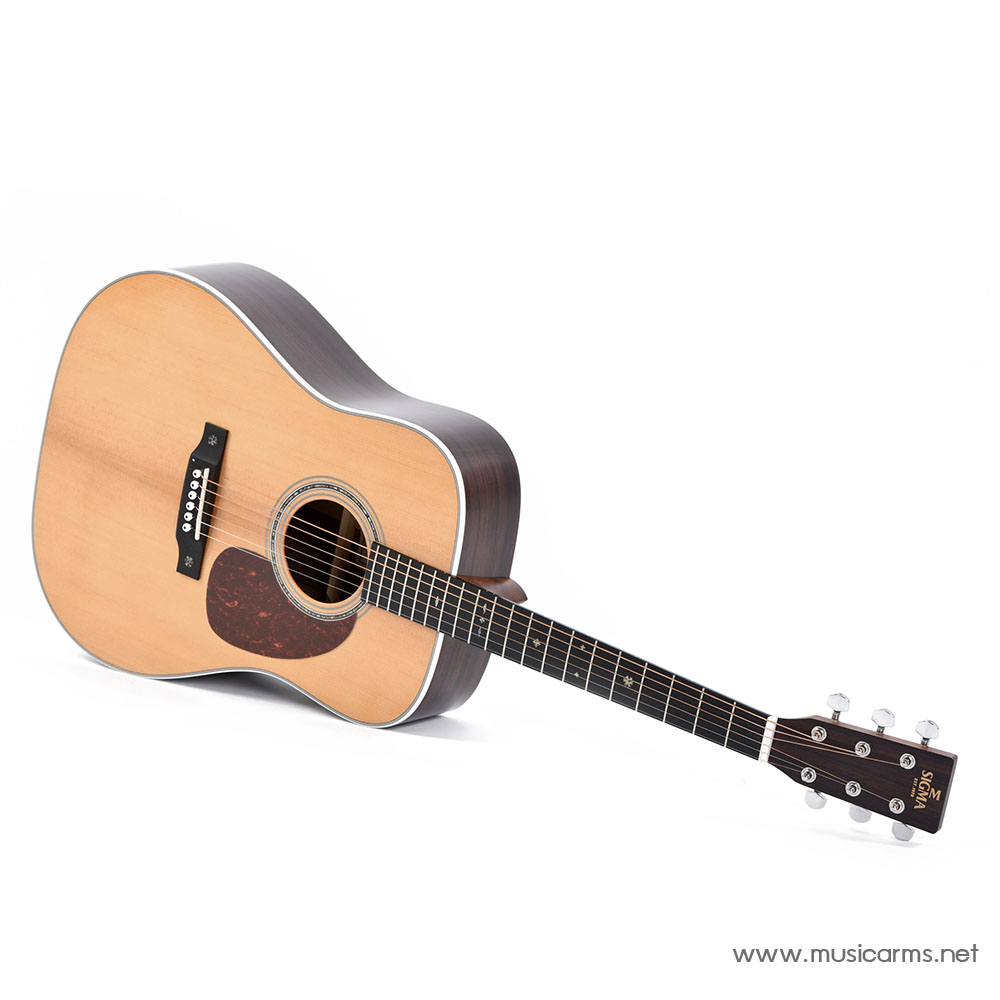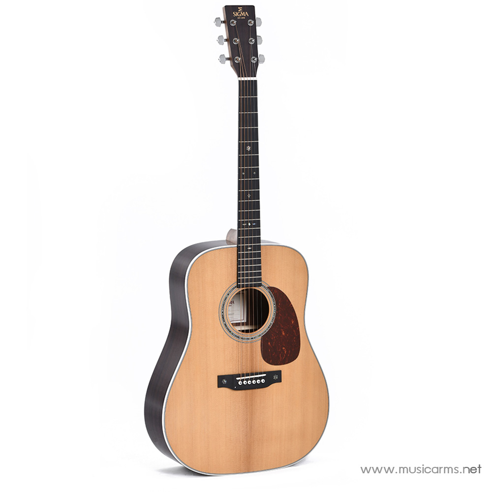 Sigma DT-1 กีตาร์โปร่งรูปทรง “dreadnought” อันเป็นเอกลักษณ์ จึงเหมาะสำหรับสถานการณ์ทางดนตรีส่วนใหญ่ การออกแบบเรียบง่ายแต่ดูดีมีเอกลักษณ์ บอดี้ไม้หน้าท็อปโซลิดซิทกาสปรูซ โดดเด่นด้วยด้านหลังและด้านข้างของ Tilia ให้โทนเสียงที่สมดุลพร้อมเสียงต่ำที่ยอดเยี่ยม คอไม้มะฮอกกานี ฟิงเกอร์บอร์ดและบริดจ์มิคาร์ตา งานประกอบทำออกมาได้ดี อะไหล่ทุกส่วนคุ้มค่า บอดี้เคลือบแบบ High Gloss สวยงามดูแลรักษาง่าย เหมาะสำหรับมือกีตาร์ทุกระดับ