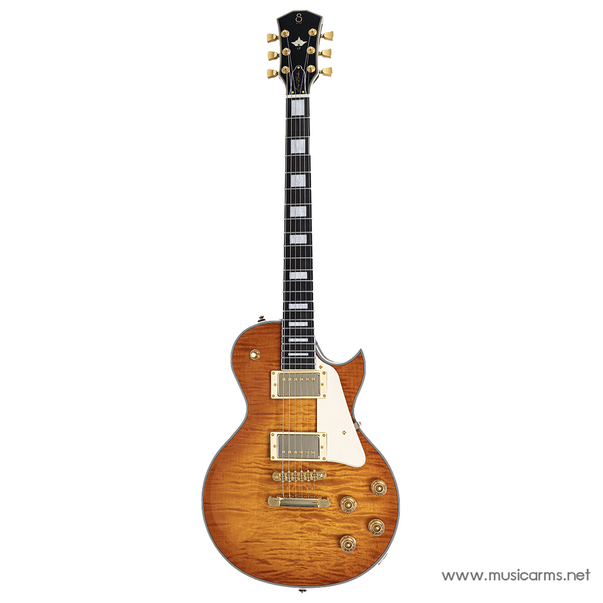 - Upgraded Gotoh Hardware & Gold Finish: อัปเกรดประสิทธิภาพการตั้งสายด้วยบริดจ์ Gotoh Tune-O-Matic และ Tailpiece อลูมิเนียม ทำงานร่วมกับปิ๊กอัพ LC Custom-2 Humbuckers ที่ให้เสียงเคลียร์และสมดุล ครบเครื่องด้วยฮาร์ดแวร์สีทอง, ลูกบิดแบบล็อกสาย (Locking Tuners) และปิ๊กการ์ดสี Ivory ที่เสริมความหรูหราขั้นสุด